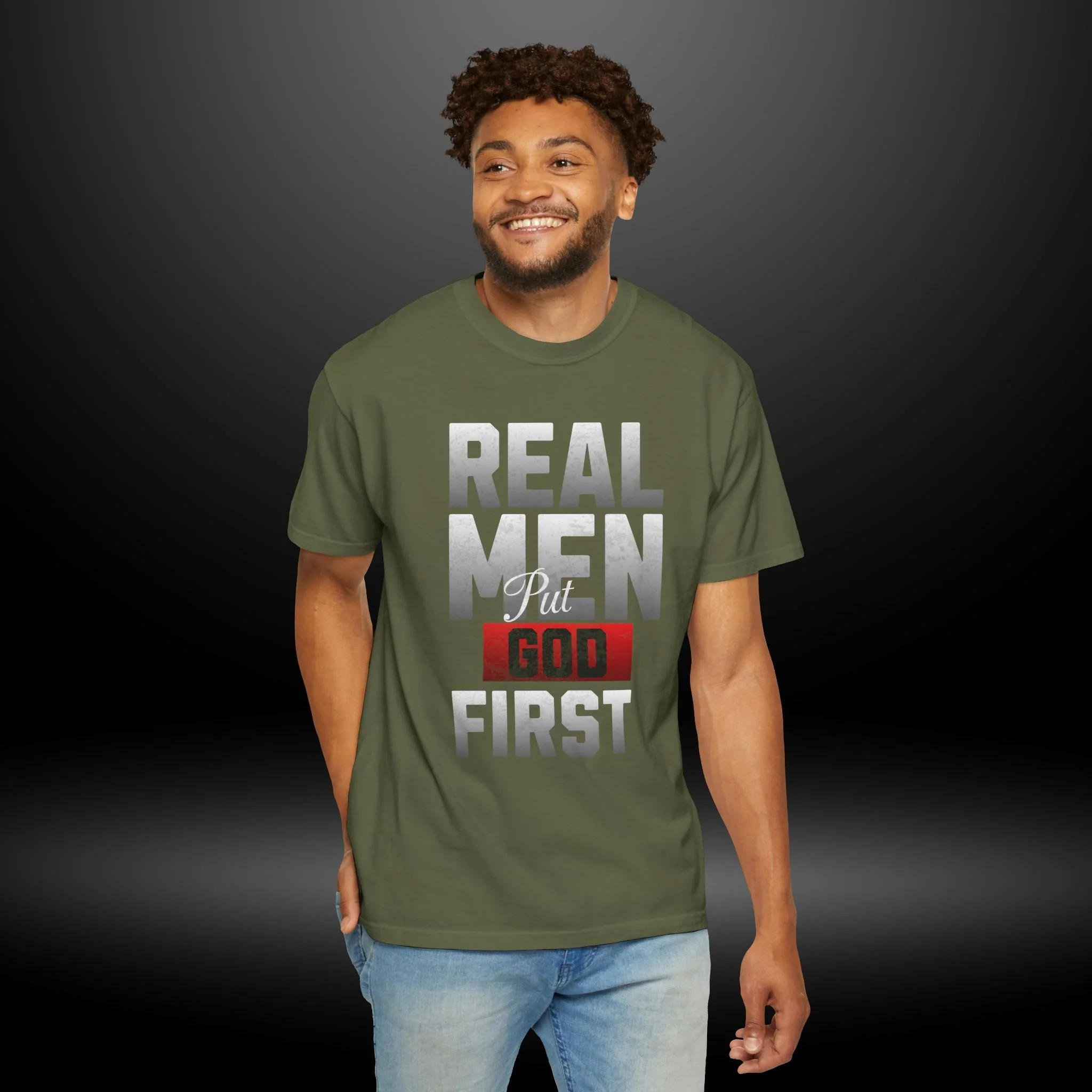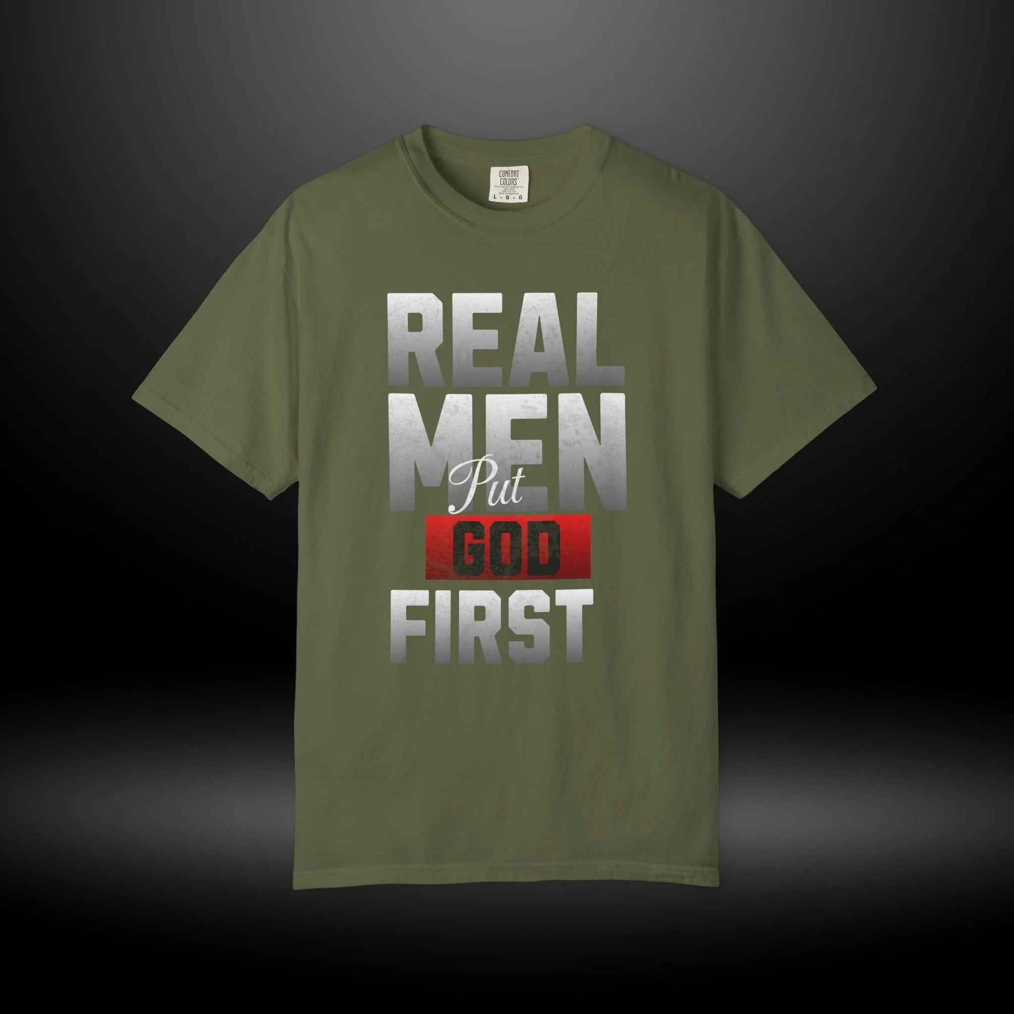 This heavyweight Comfort Colors tee carries a quiet, confident message: faith comes first. The soft, garment-dyed cotton settles in like an old friend, the relaxed fit and durable double-needle seams mean it stands up to frequent wear and washes. Worn alone or layered under a flannel, it reads like a statement of steady priorities — the kind of shirt you grab on Sunday morning, for volunteer work, or before a long drive to clear your head. The muted, lived-in colors and tubular construction give it a timeless, worn-in look that complements casual wardrobes without shouting for attention. For folks who wear their faith plainly and comfortably, this tee becomes part of the routine, the quiet reminder stitched into the day.