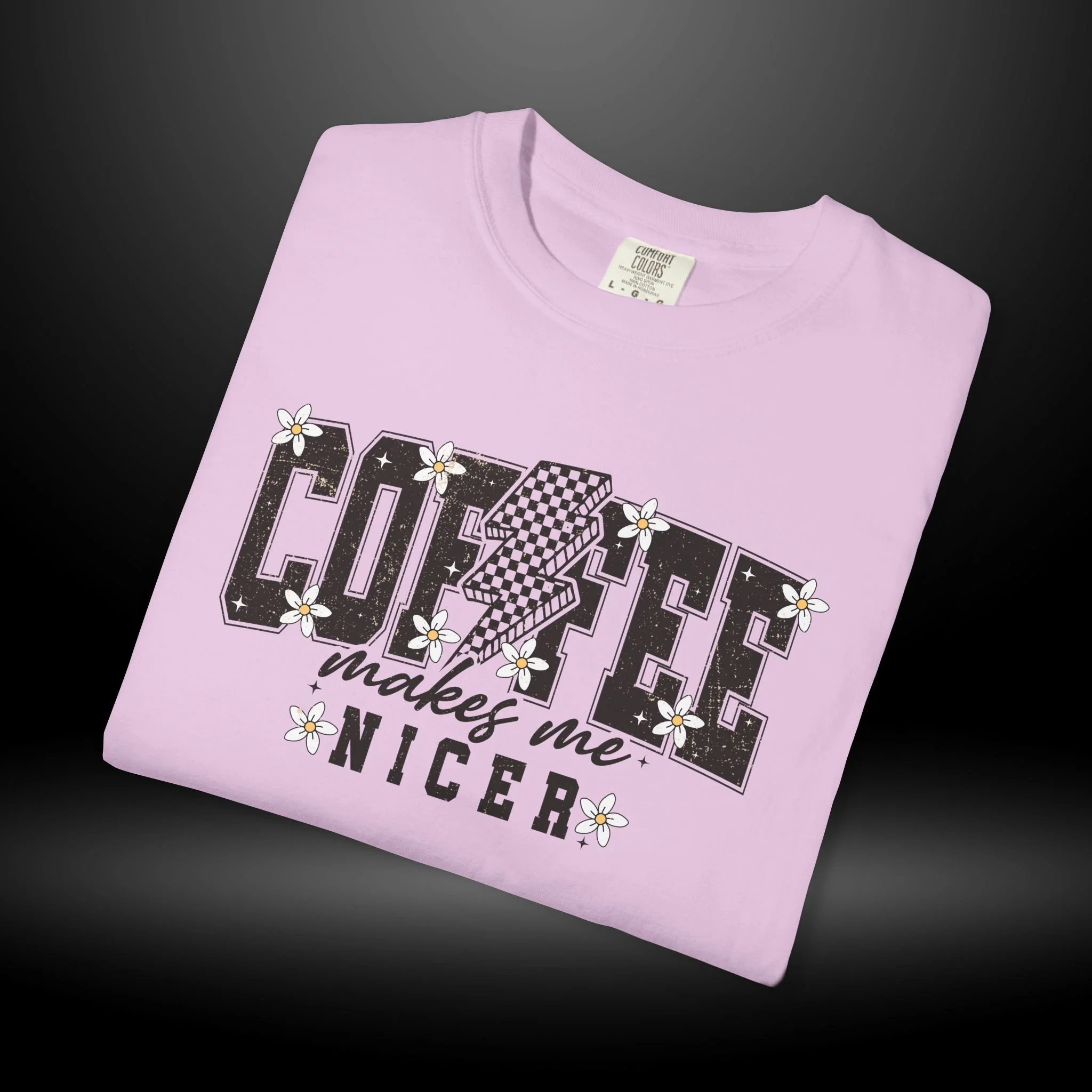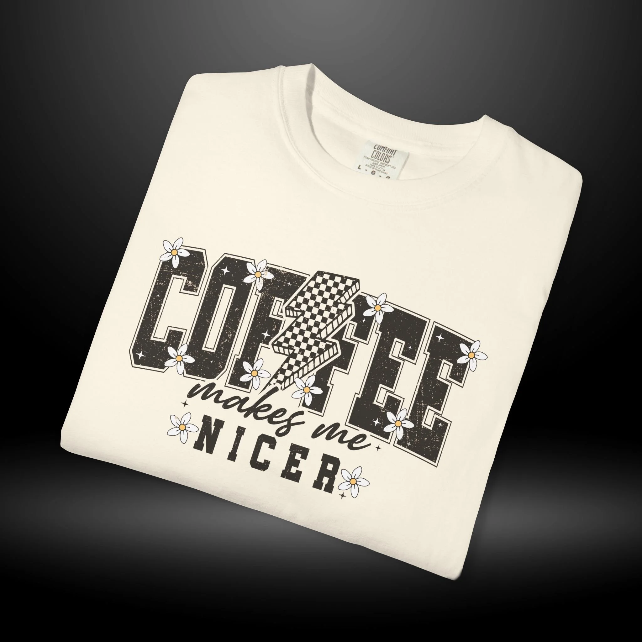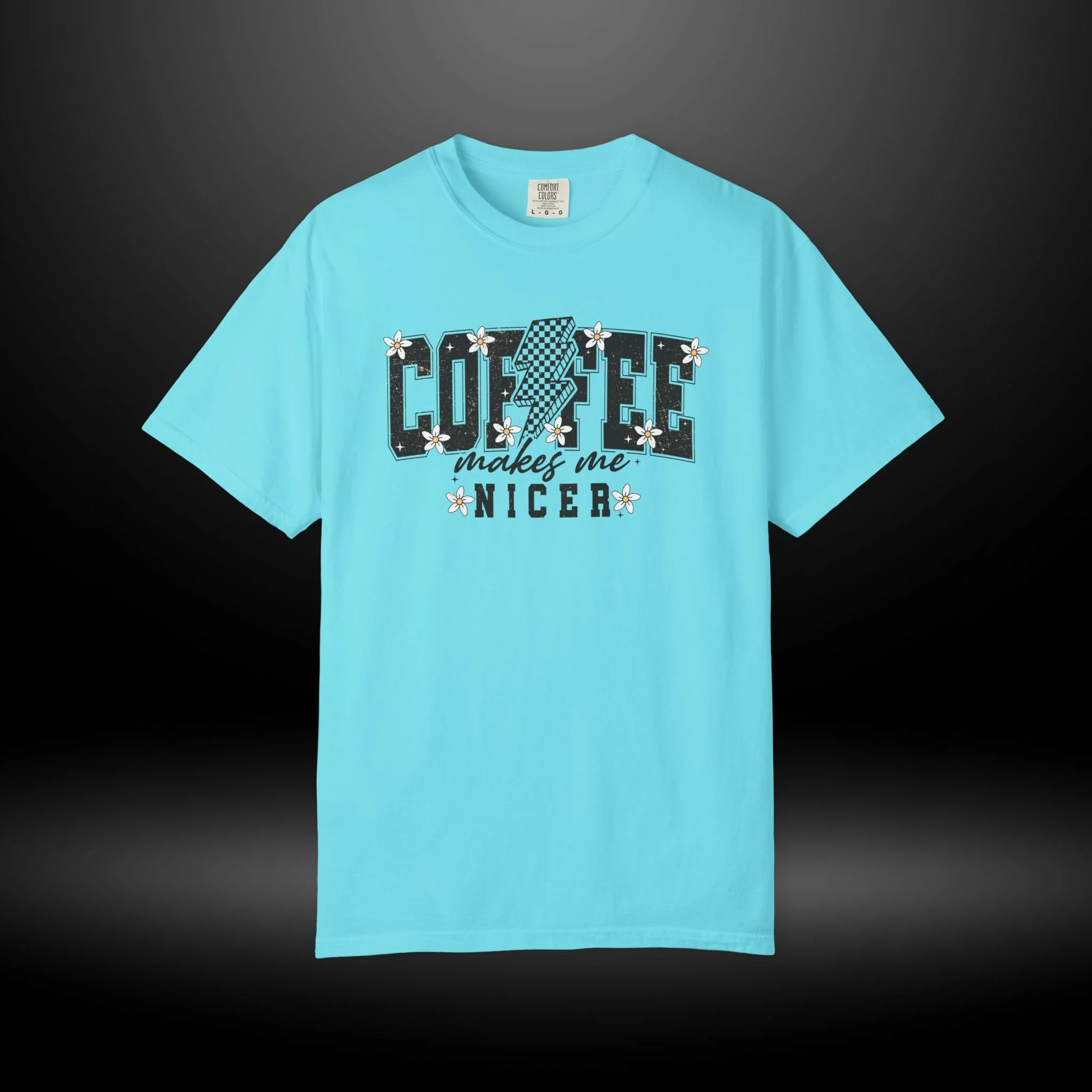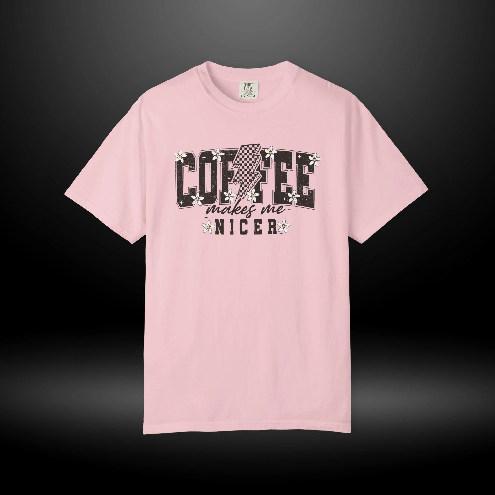 This relaxed, garment-dyed tee feels like your favorite coffee shop tee — soft, worn-in, and quietly confident. The heavyweight cotton and post-dye finish give the fabric a lived-in texture that settles comfortably across the shoulders. A bold, slightly distressed front graphic reads with playful energy, perfect for slow mornings, backyard catch-ups, or running out for a quick espresso. Wear it with faded jeans, an oversized flannel, or under a worn denim jacket; it settles into your routine and gets softer with each wash.