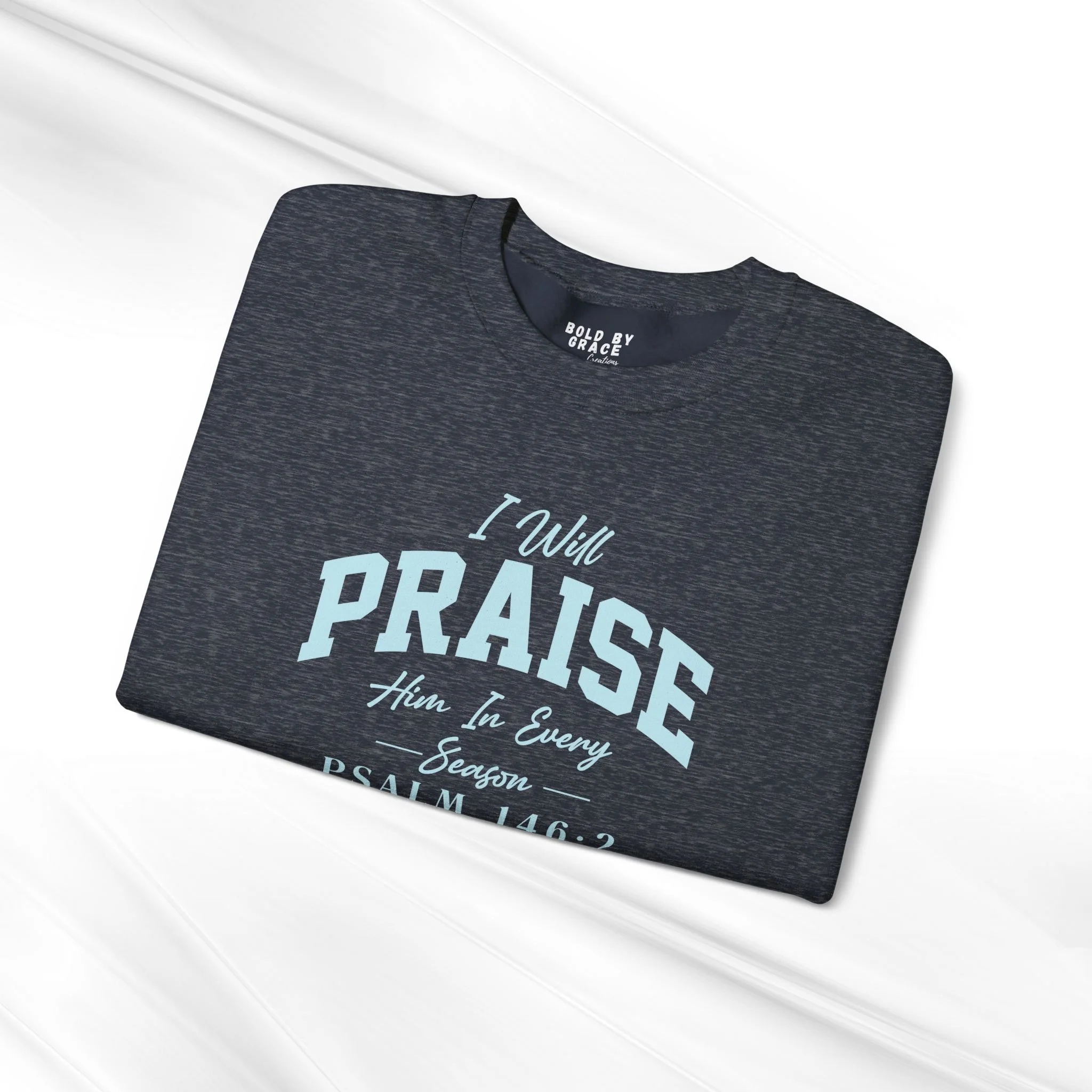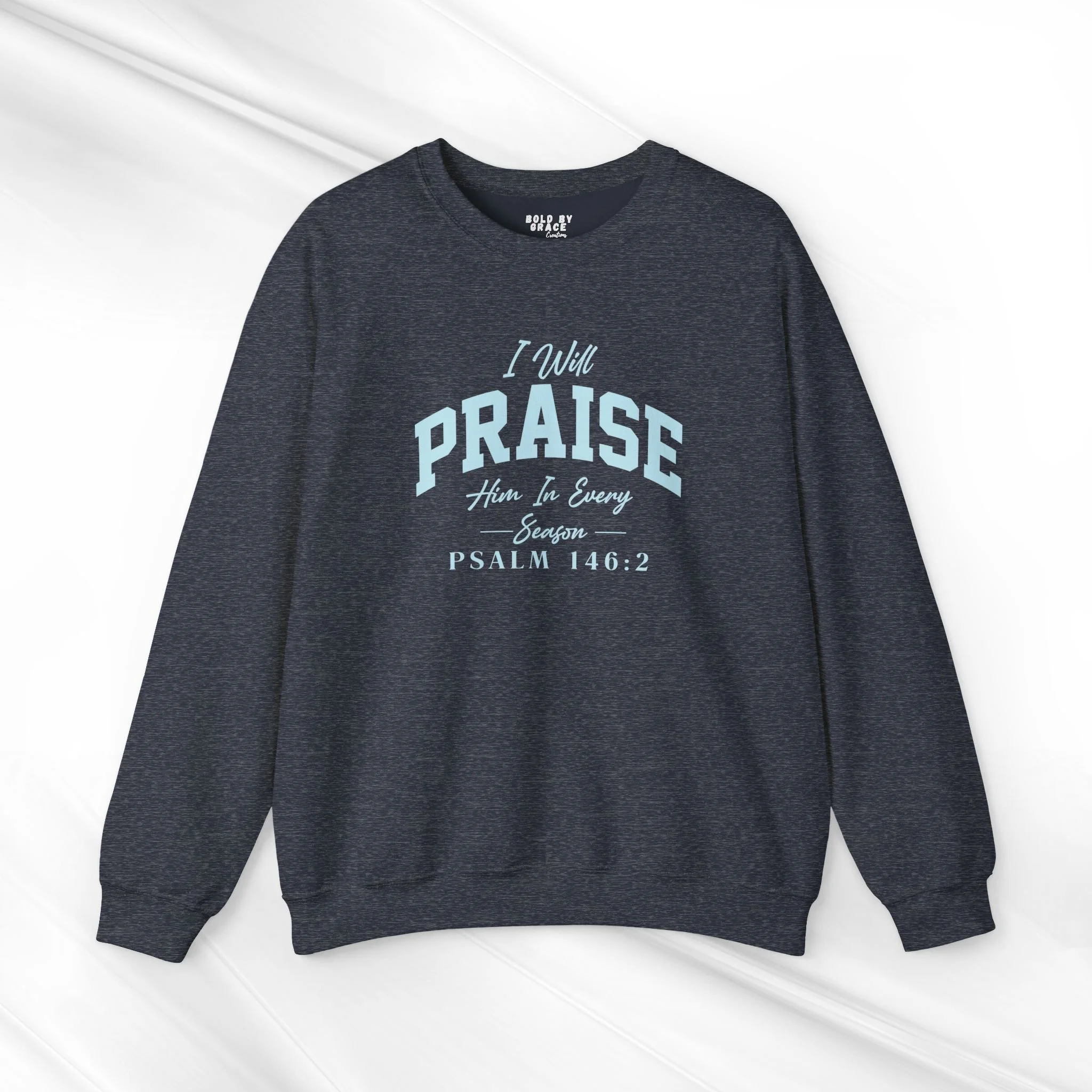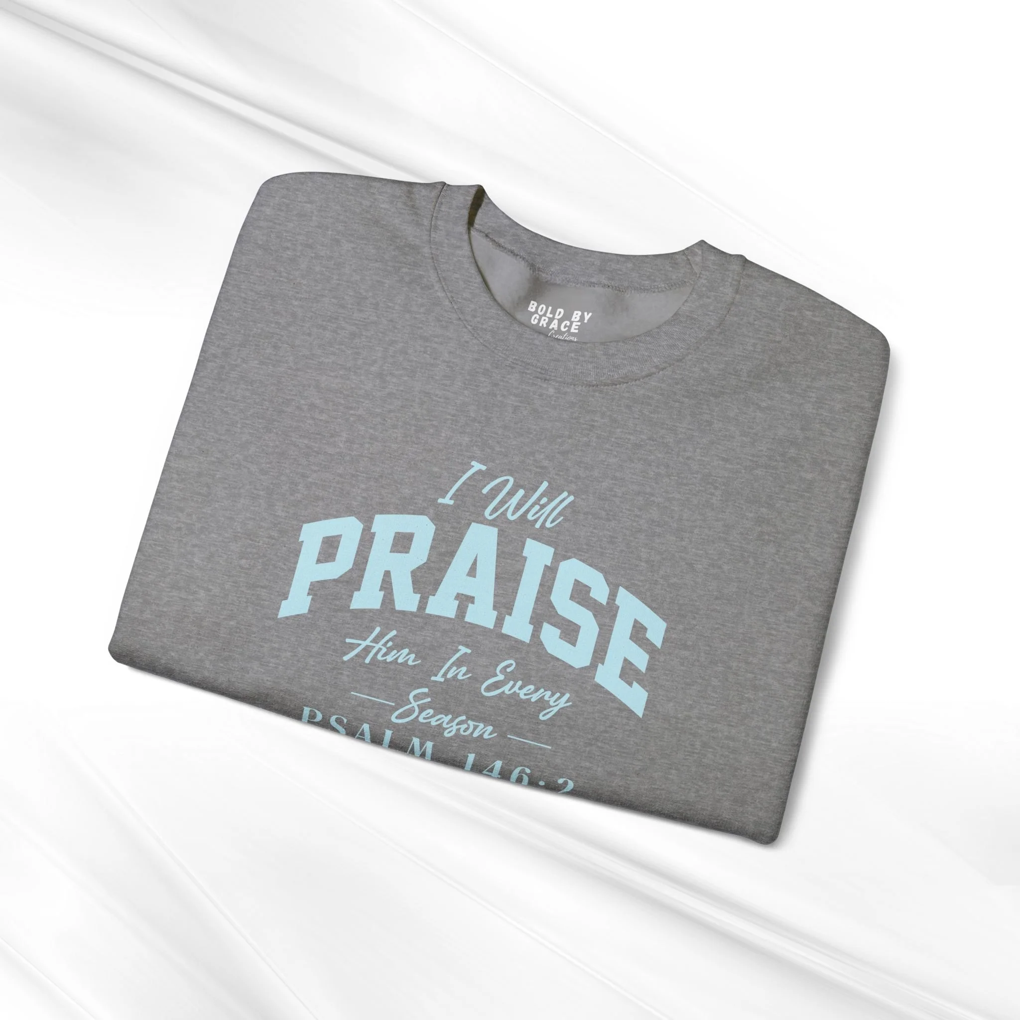 Soft, breathable, and quietly expressive — this crewneck is for people who carry their faith into everyday moments. The medium-weight cotton-poly blend feels warm without weighing you down. Subtle pastel lettering on a clean white base reads like a whispered reminder: to praise, to pause, to breathe. Wear it to small-group meetups, Sunday morning coffee runs, or slow afternoons at home. The classic crew cut and ribbed collar keep the silhouette familiar and easy