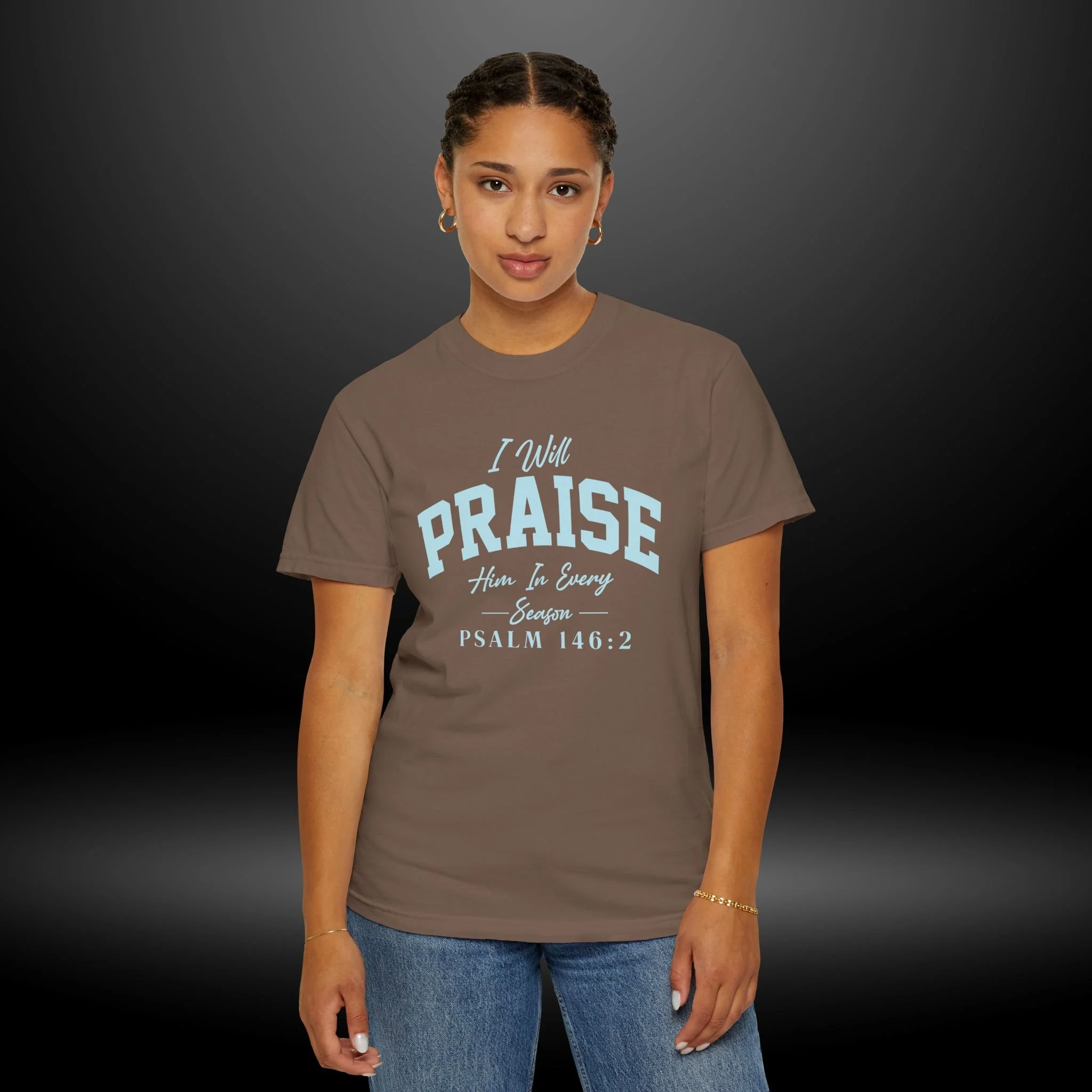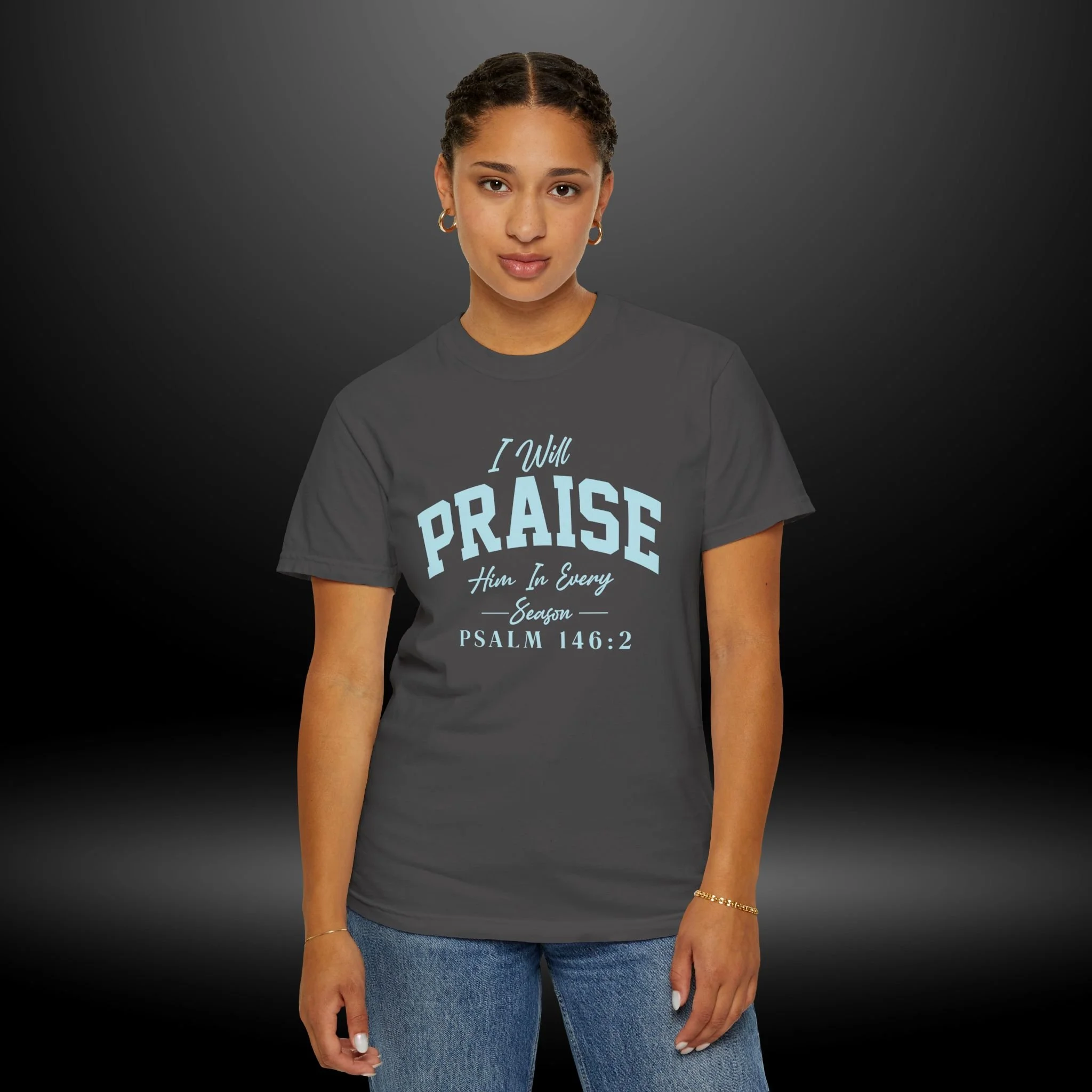 Soft, lived-in cotton that carries a quiet message. This garment-dyed tee drapes with a relaxed, roomy fit and a gentle, vintagewashed color that feels like an old favorite from the first wear. Lightweightly heavy (6.1 oz) ring-spun cotton and double-needle stitching mean it wears well through many seasons. The front print reads with subtle, airy lettering that blends into the fabric for an understated, contemplative look—an easy layer for slow mornings, church gatherings, or weekend meetups where faith and calm take center stage.