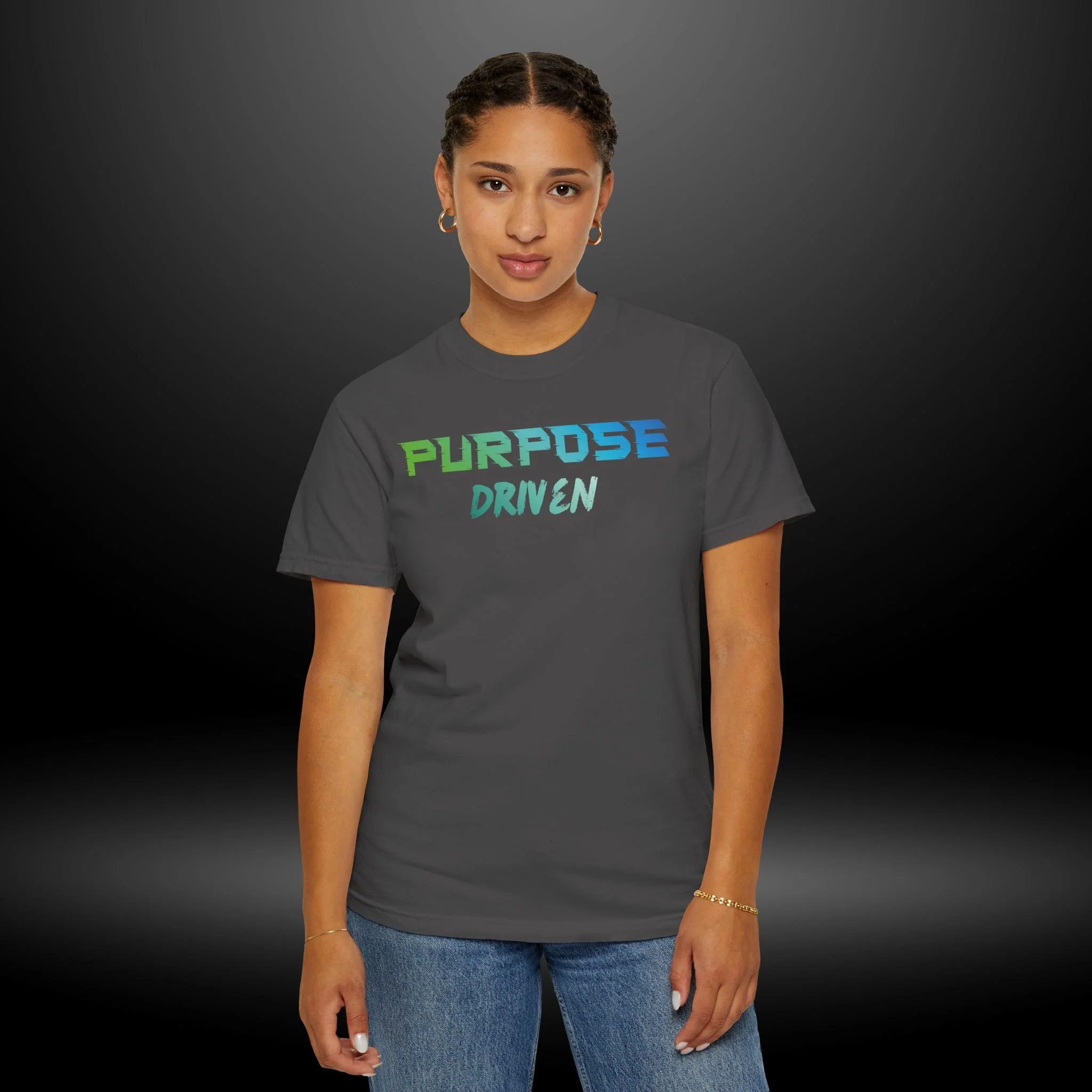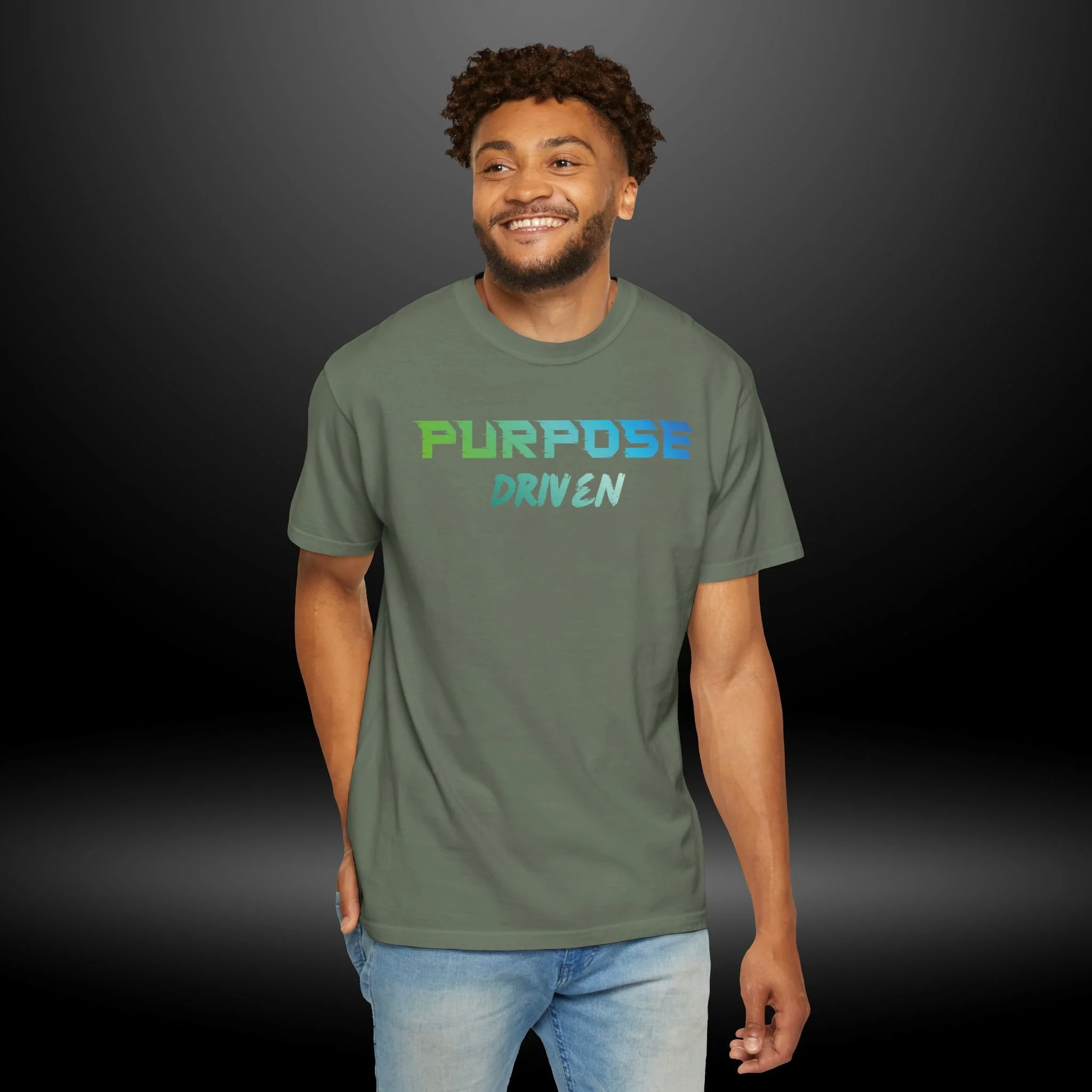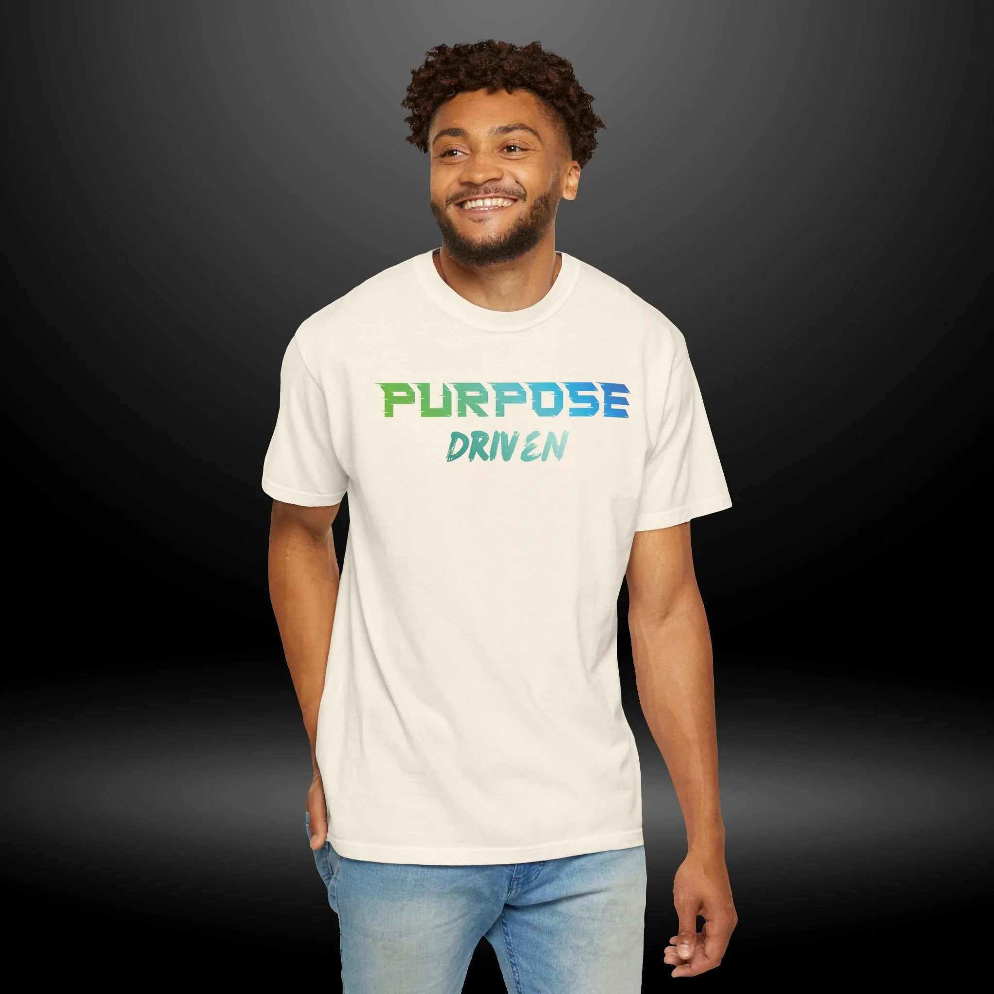 This garment-dyed cotton tee carries a calm, purpose-first energy. The soft, slightly lived-in fabric and relaxed cut invite easy movement — whether you’re heading to a brainstorming session, a weekend volunteer shift, or a quiet morning walk. The simple, hand-lettered “PURPOSE DRIVEN” design in cool green-to-blue tones reads like a quiet reminder to move with intention. It sits comfortably under a jacket or stands alone as a statement piece, blending low-key style with a values-forward message. Expect a broken-in feel from the dyeing process, sturdy double-needle seams that hold up to repeated wear, and a roomy, relaxed silhouette that layers well in cooler weather.