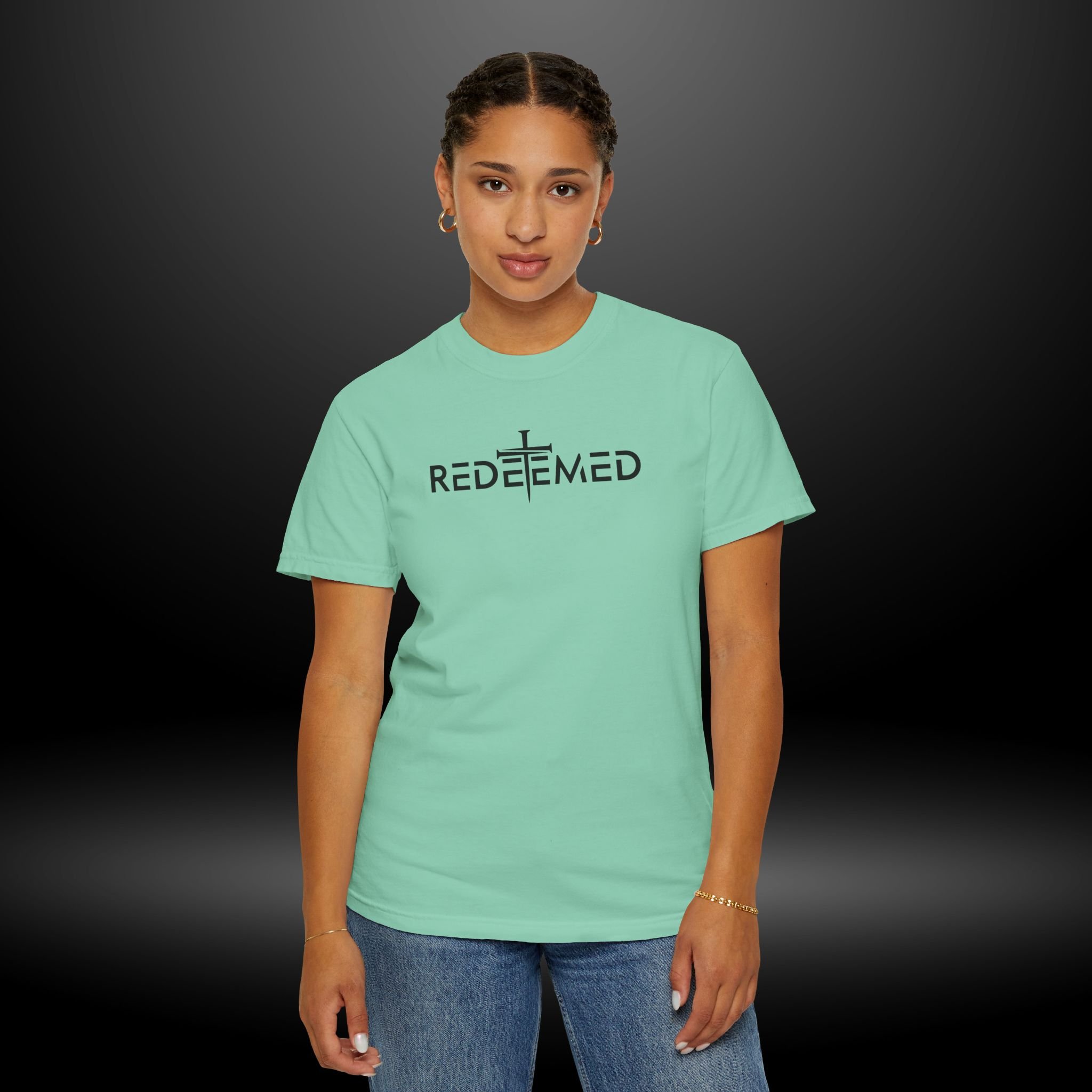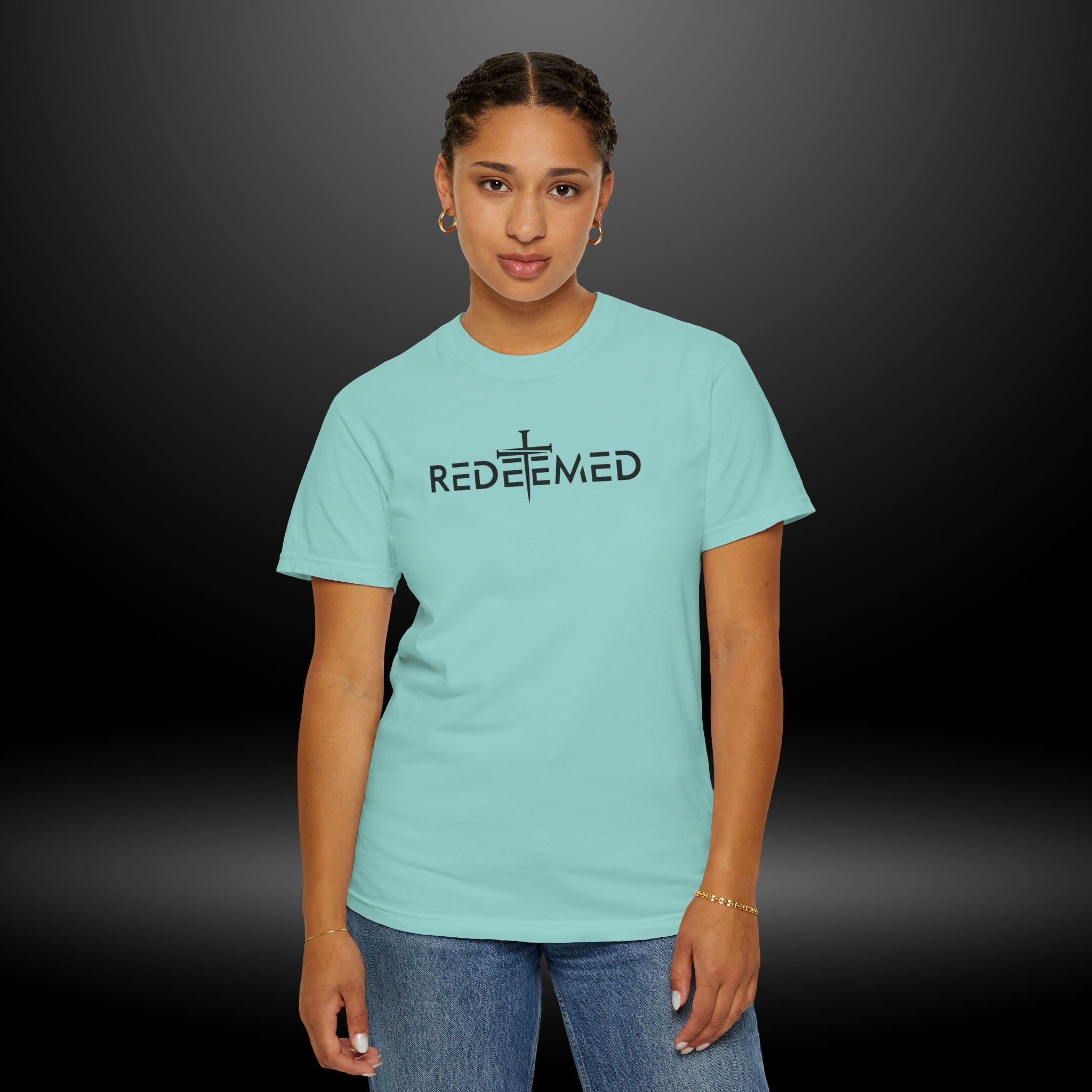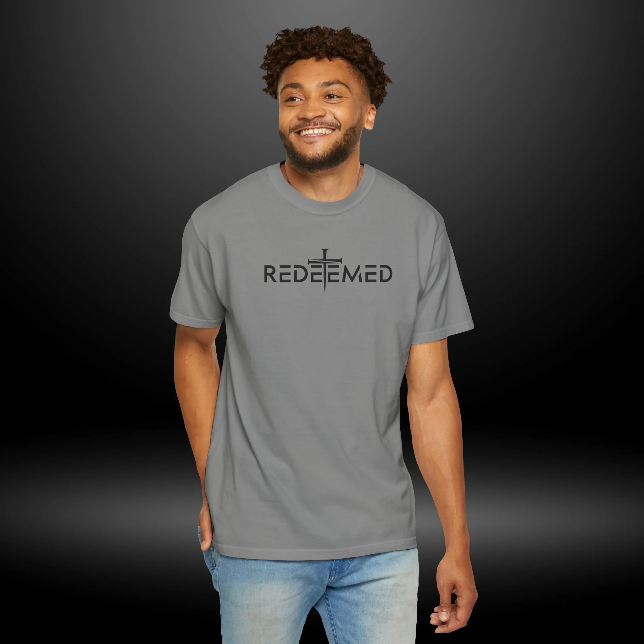 This relaxed-fit garment-dyed tee carries a quiet, steady message: Redeemed. The cross woven into the lettering keeps the statement humble and rooted — not loud, but unmistakable. Made from heavyweight, ring-spun cotton, the shirt has a soft, broken-in hand thanks to post-construction dyeing. It drapes easily over jeans or layered under a jacket, the kind of staple you reach for when you want to wear your faith with calm confidence. The muted texture from garment-dyeing and the sewn-in label give it an authentic, lived-in feel that ages gracefully with wear. Wear it to church gatherings, service projects, or slow Sundays at home to anchor your look with thoughtful simplicity.