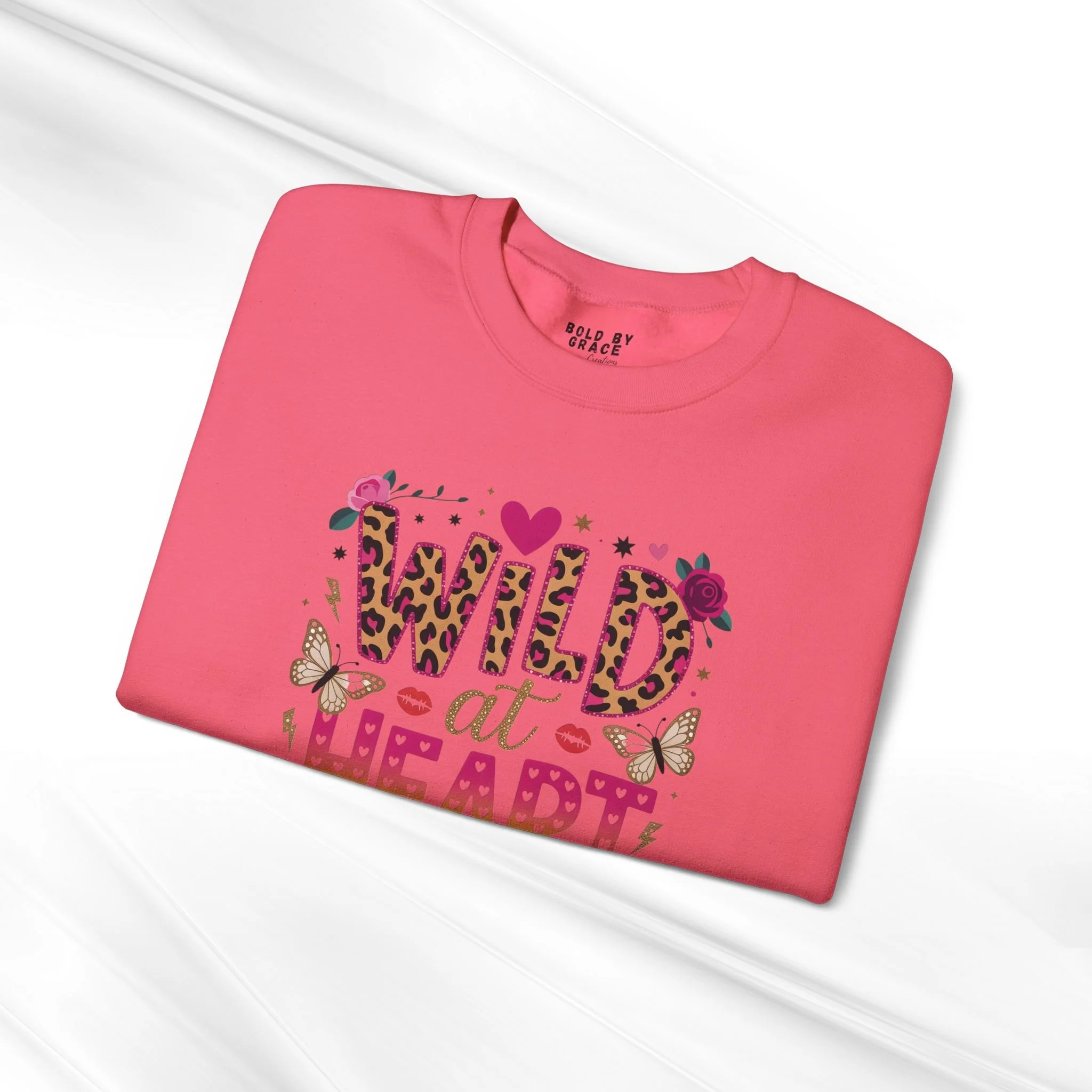 This cozy crewneck brings a playful, confident energy to everyday wear. Soft yet substantial, it wears like a warm hug — roomy through the body with a clean crew neckline and durable double-needle stitching that stands up to repeated wear. The front artwork mixes leopard print, hearts and whimsical accents to celebrate a spirited, adventurous mood. Lightweight enough for layering, it’s the kind of sweatshirt you reach for when you want comfort without losing personality.