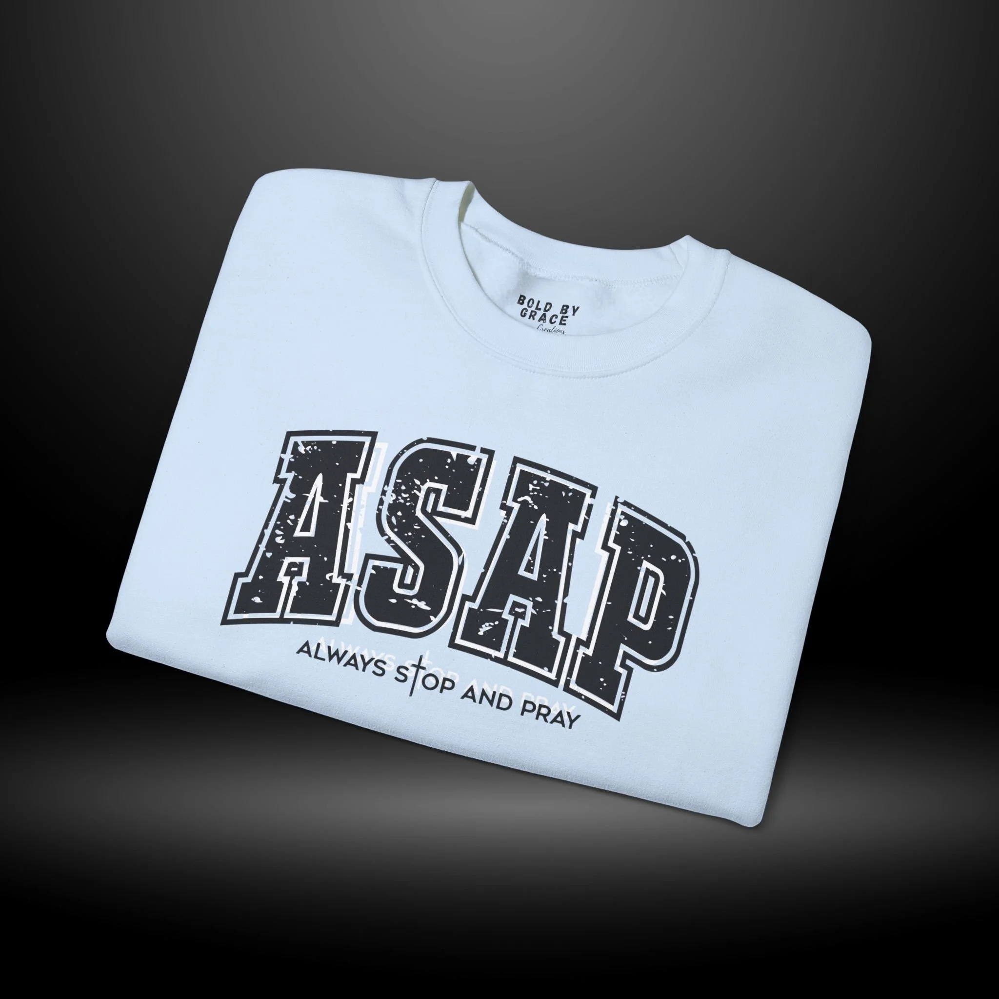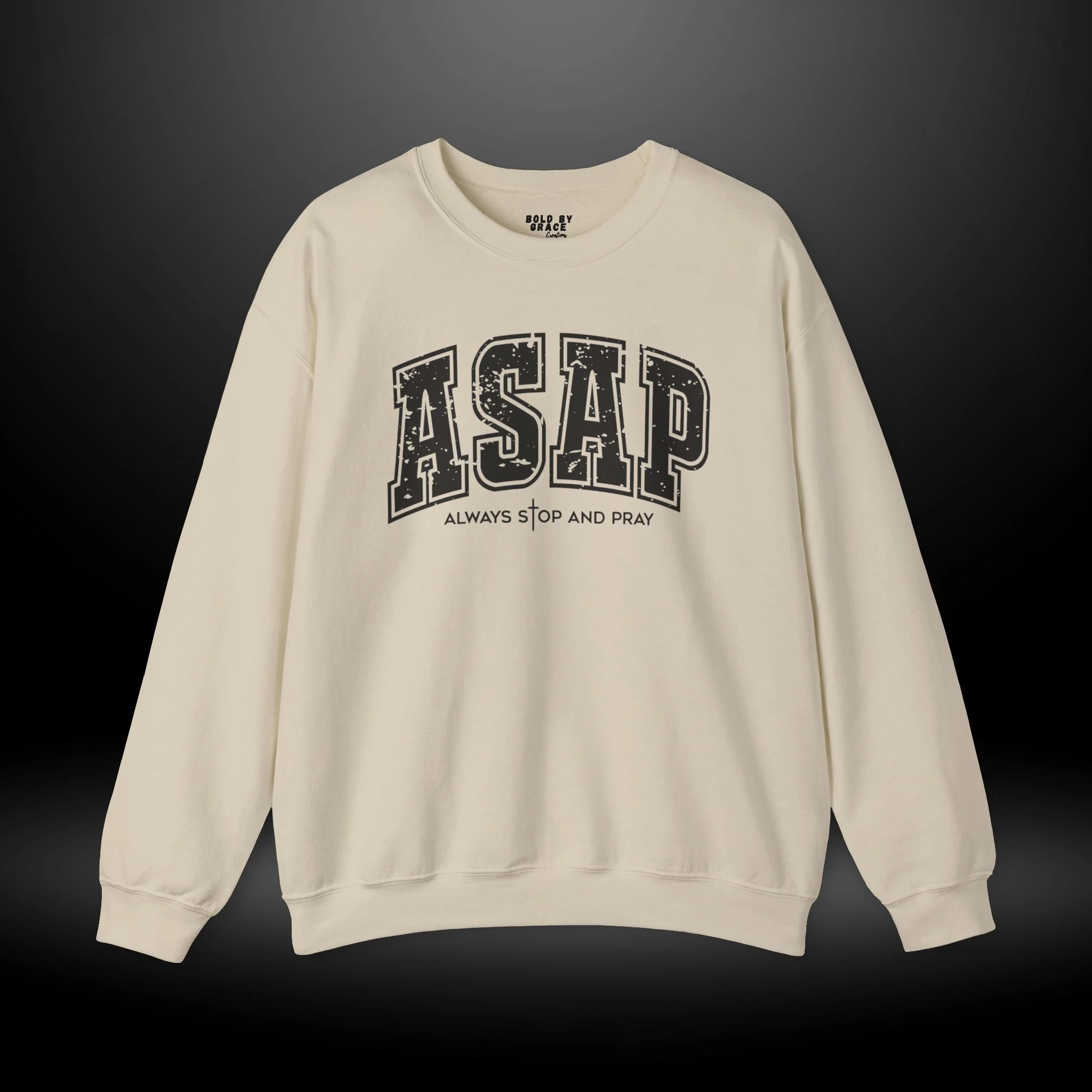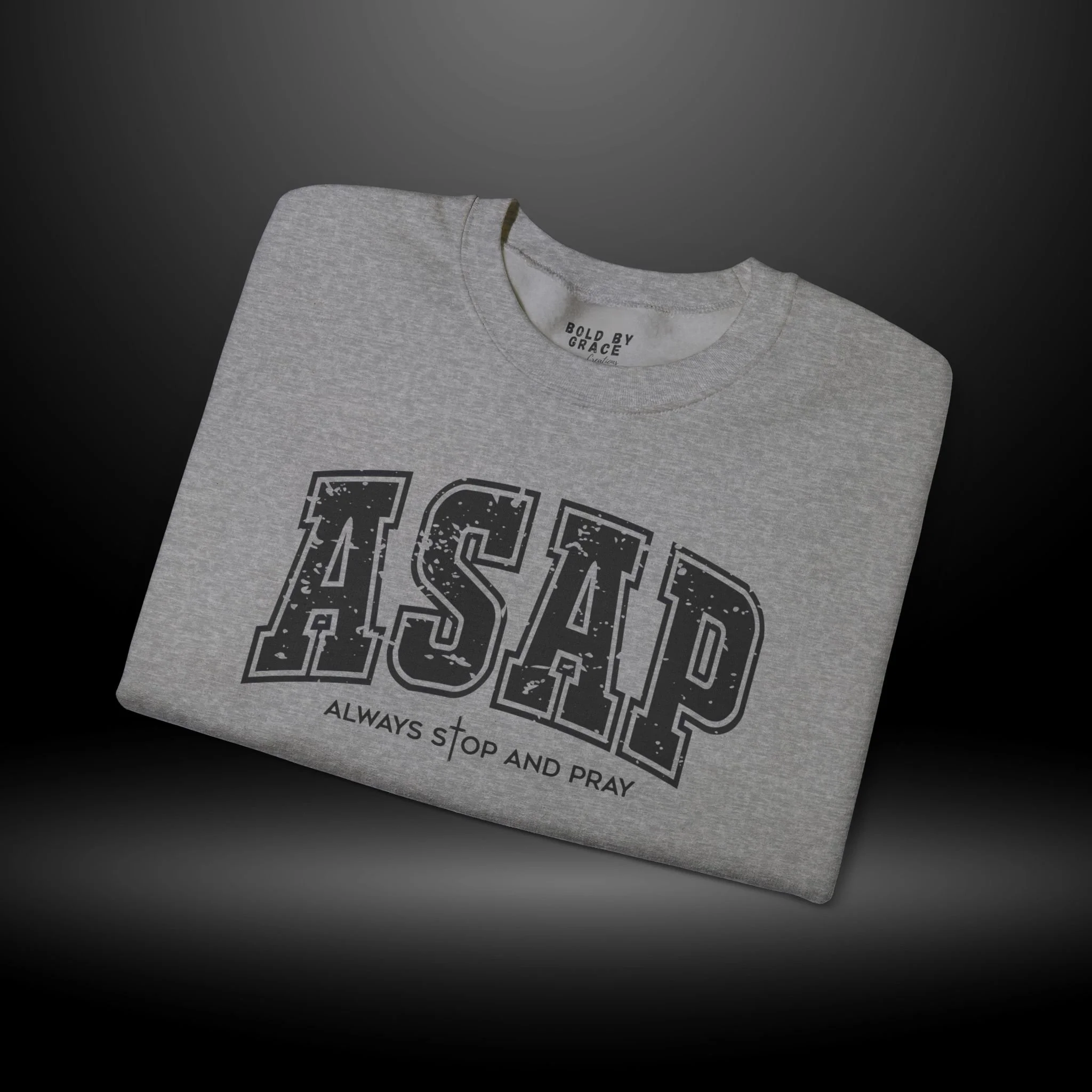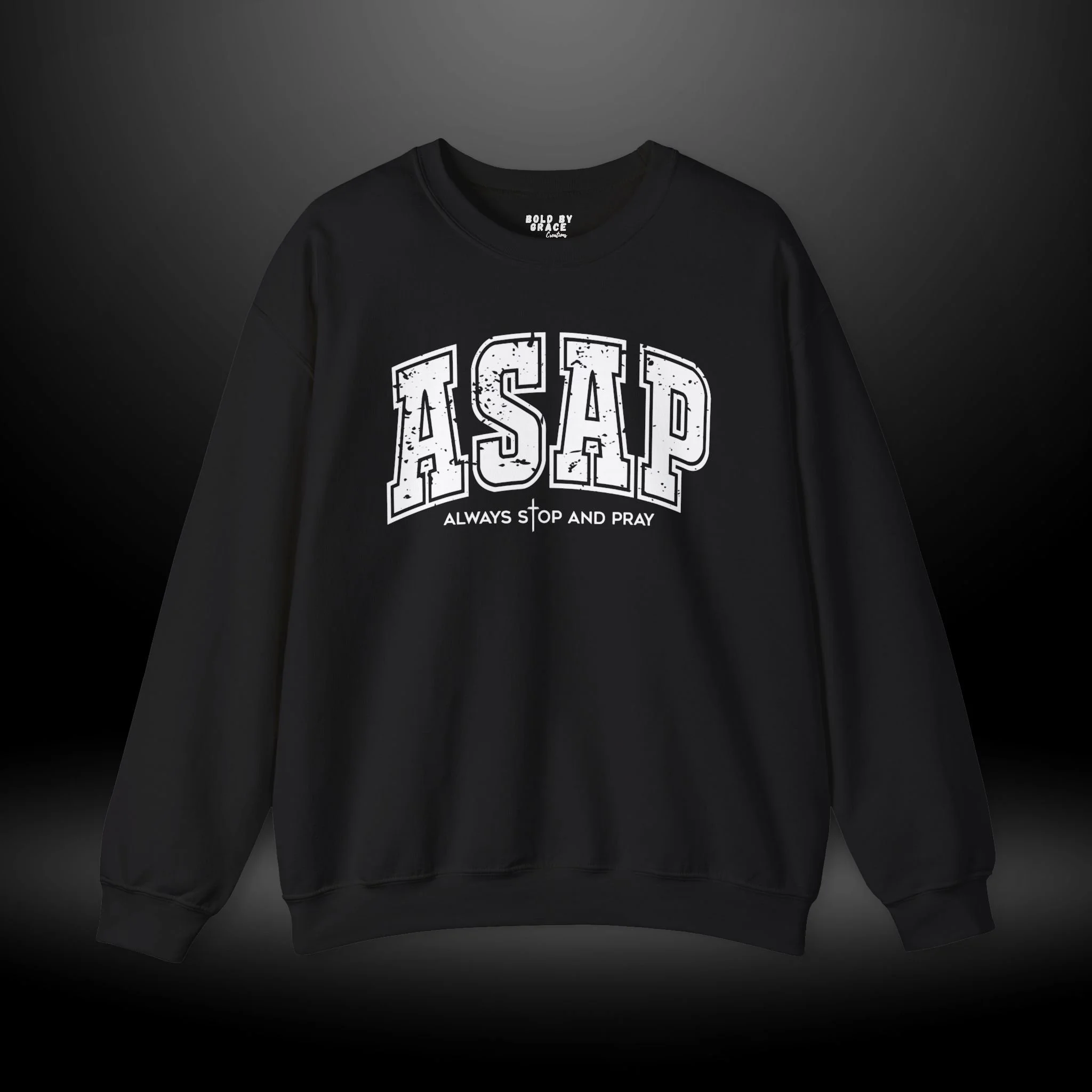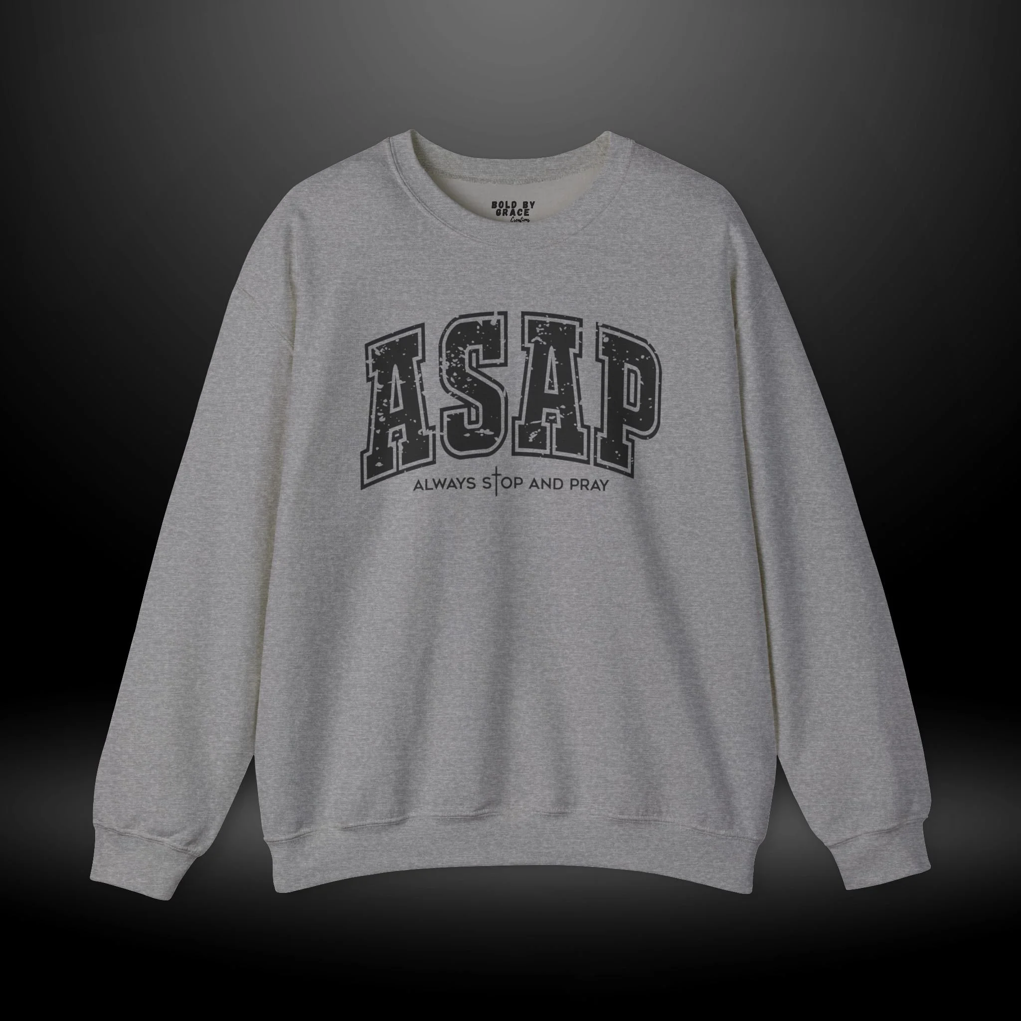'ASAP: Always Stop And Pray' Crewneck Sweatshirt — Minimal Athletic Graphic Pullover