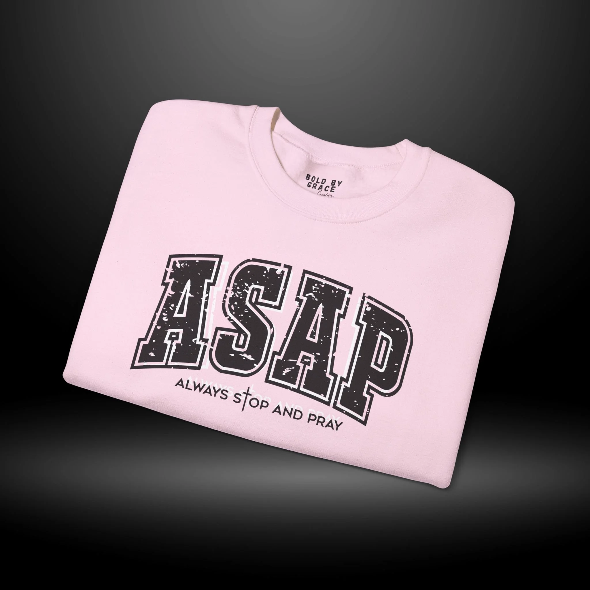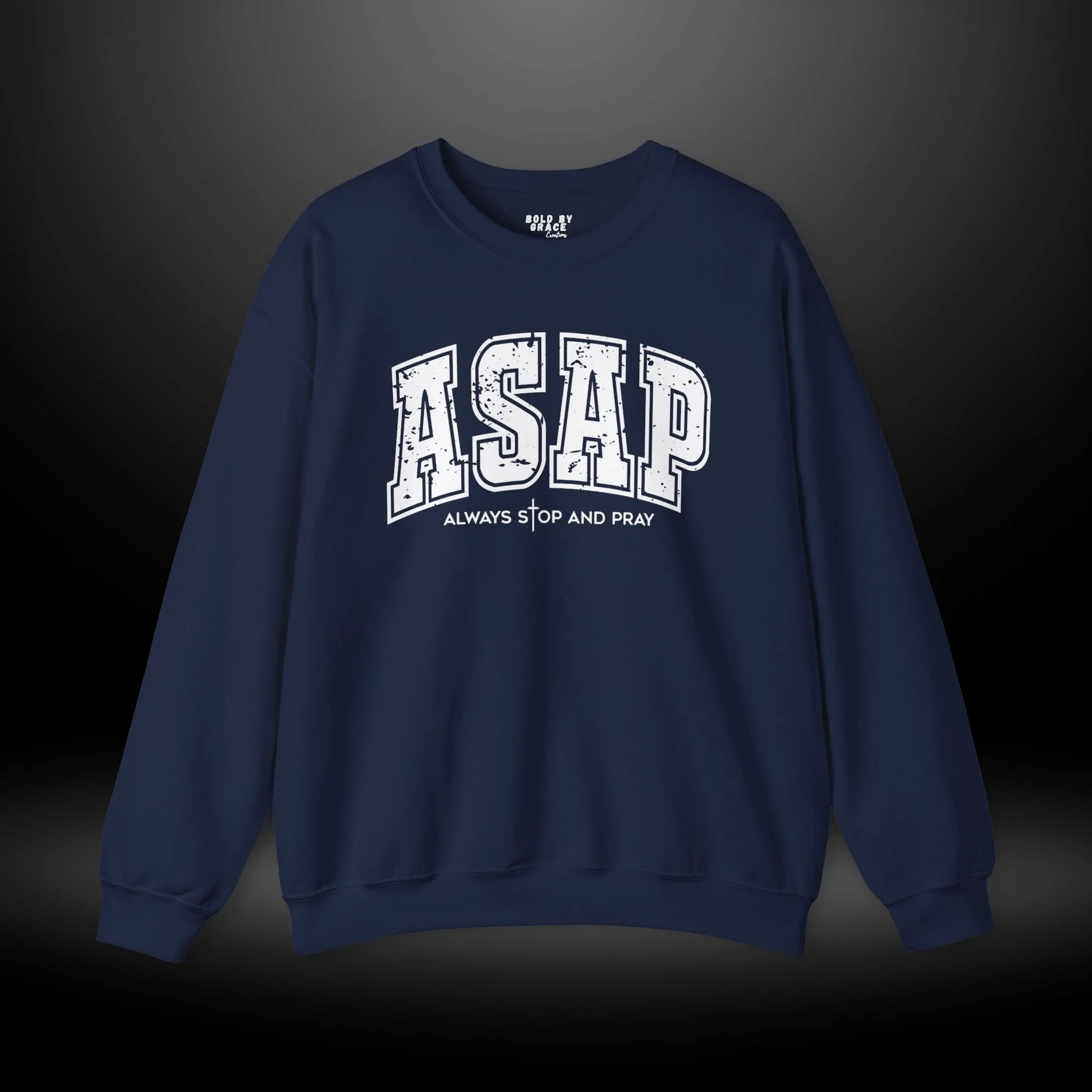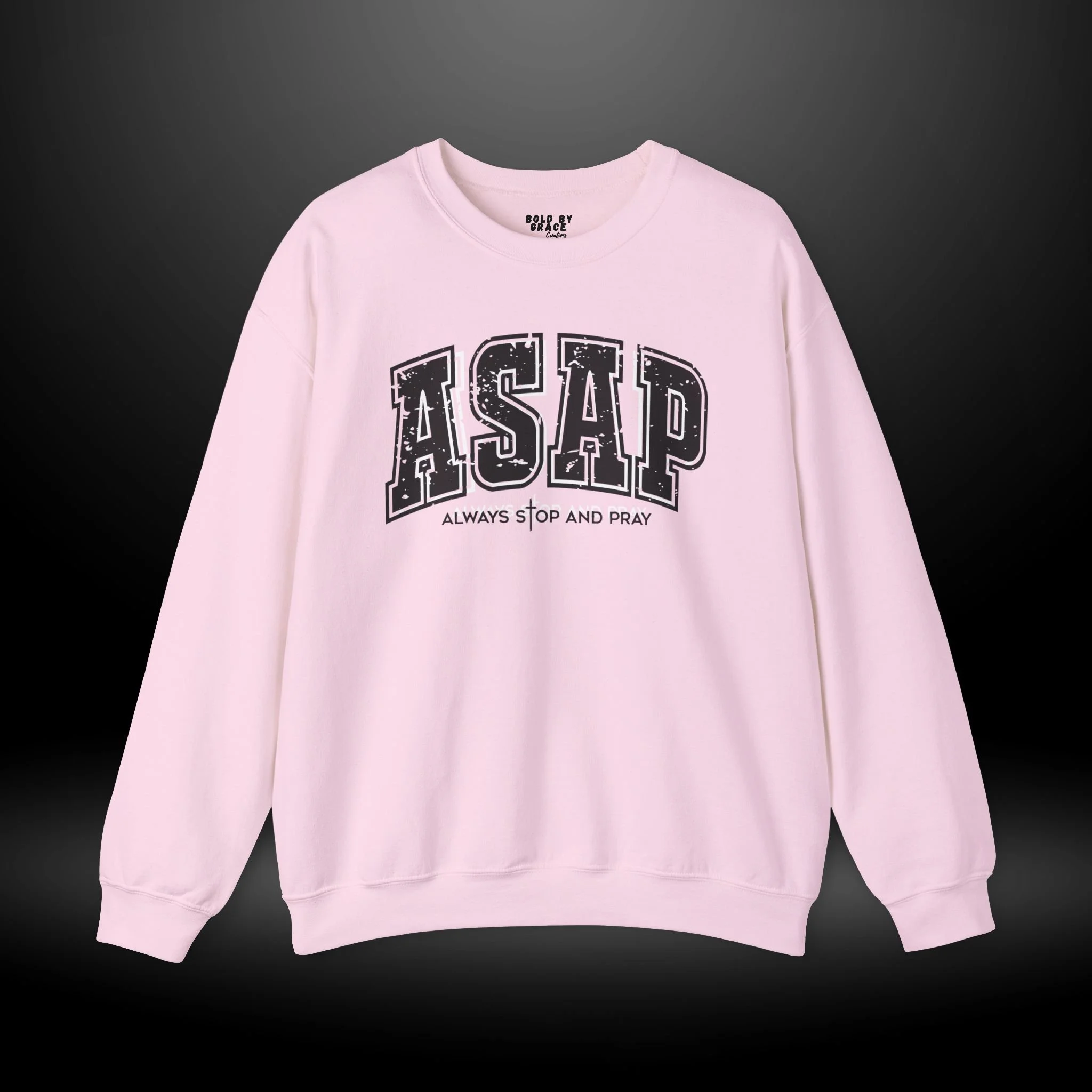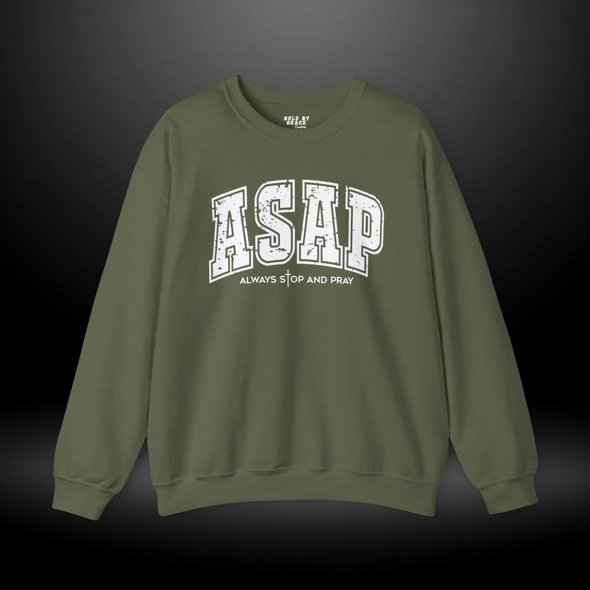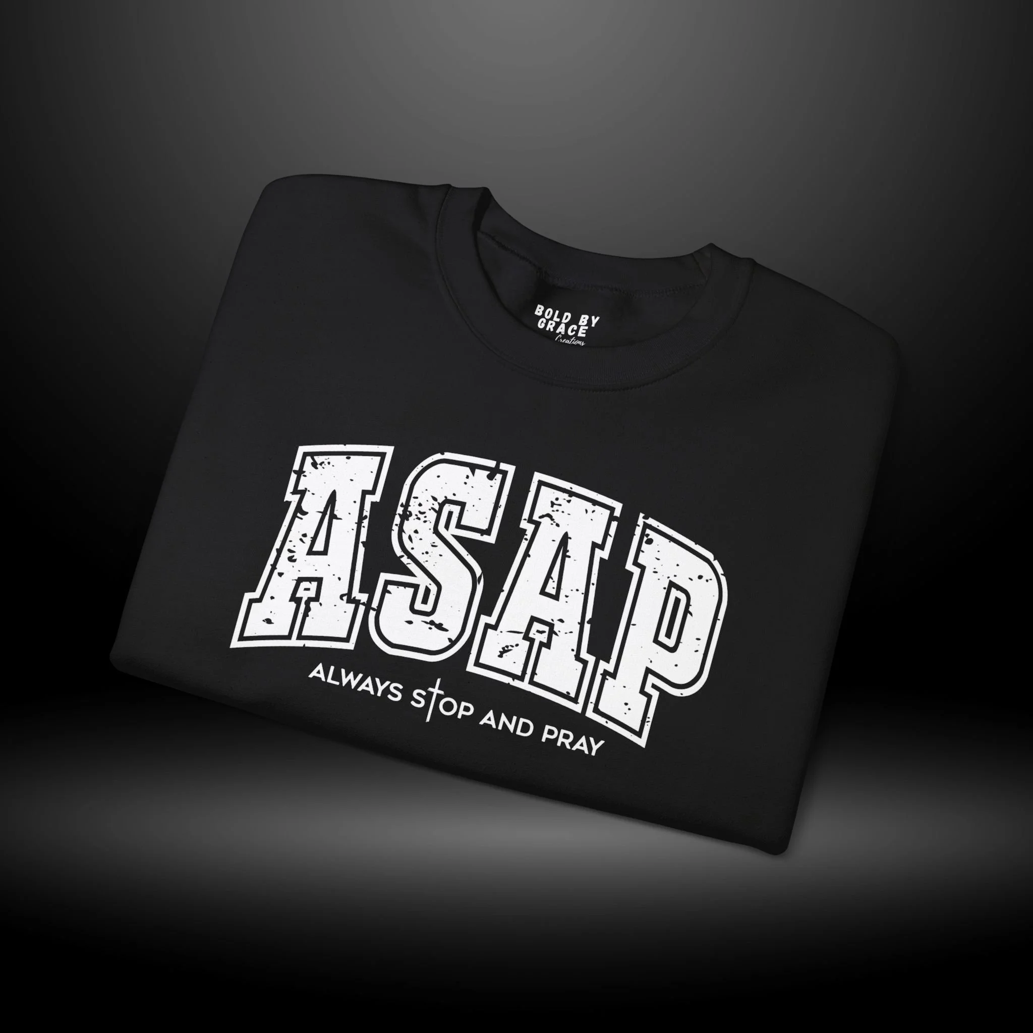 'ASAP: Always Stop And Pray' Crewneck Sweatshirt — Minimal Athletic Graphic Pullover