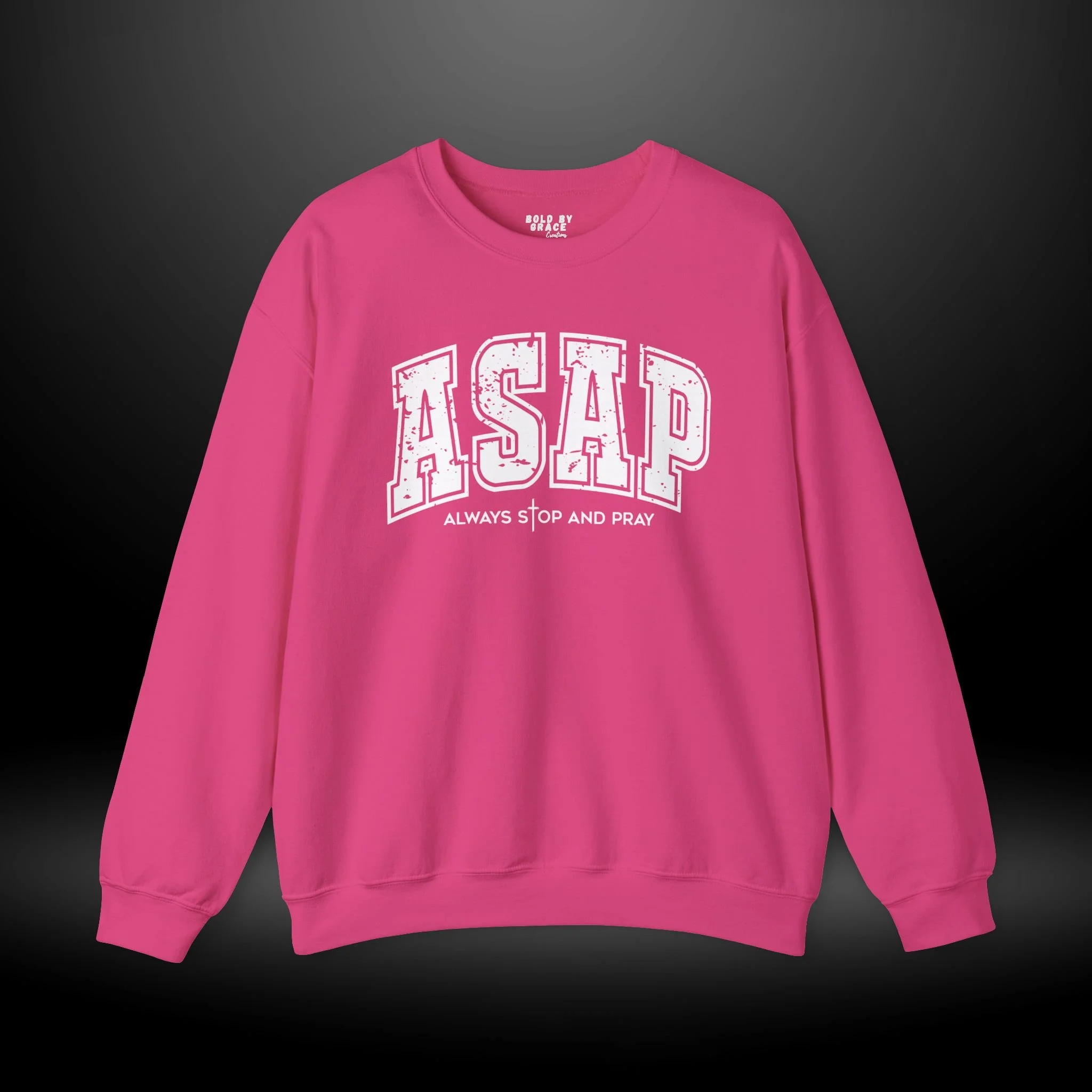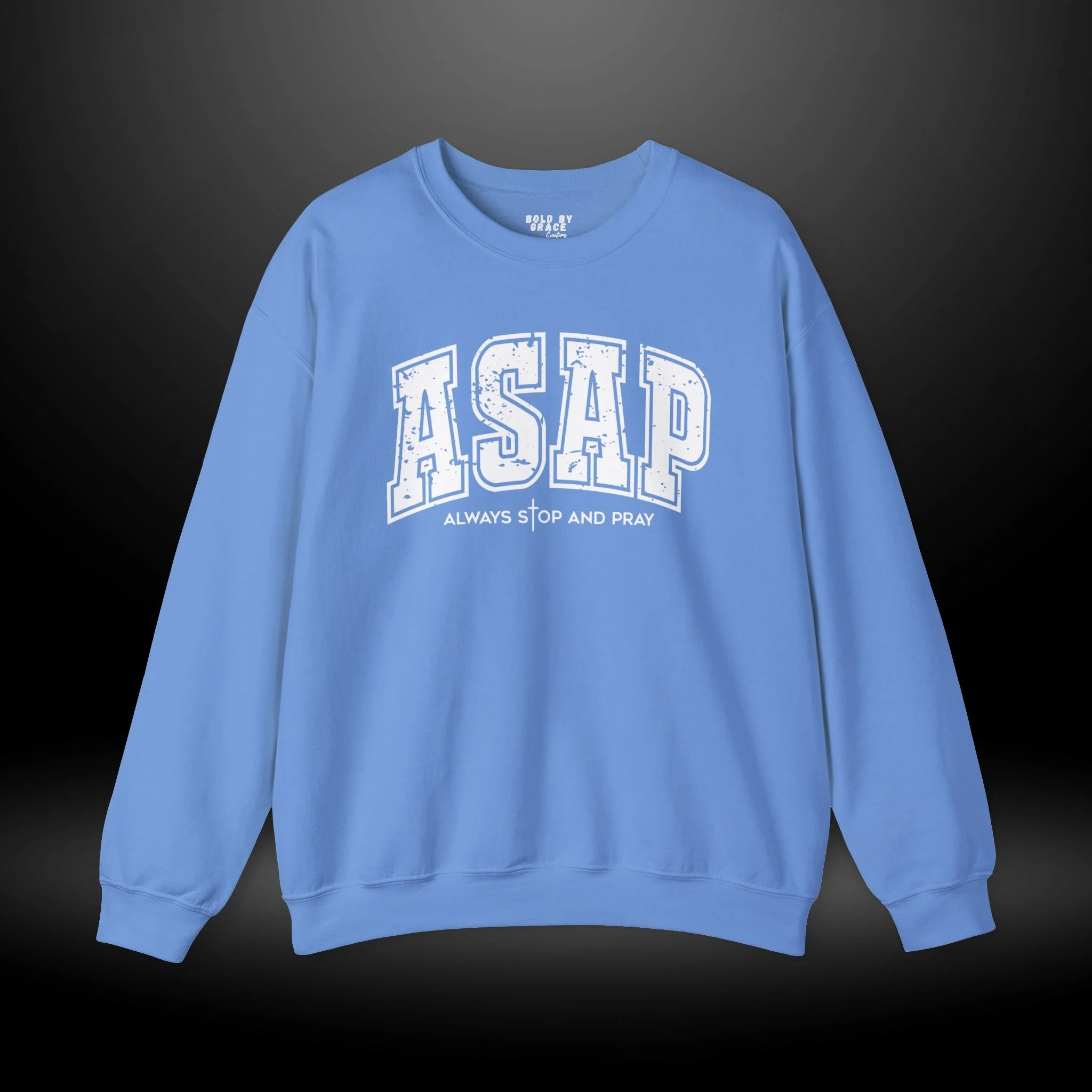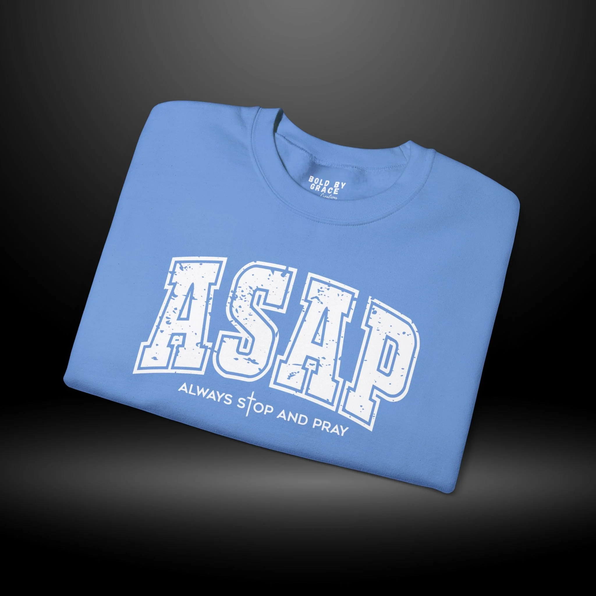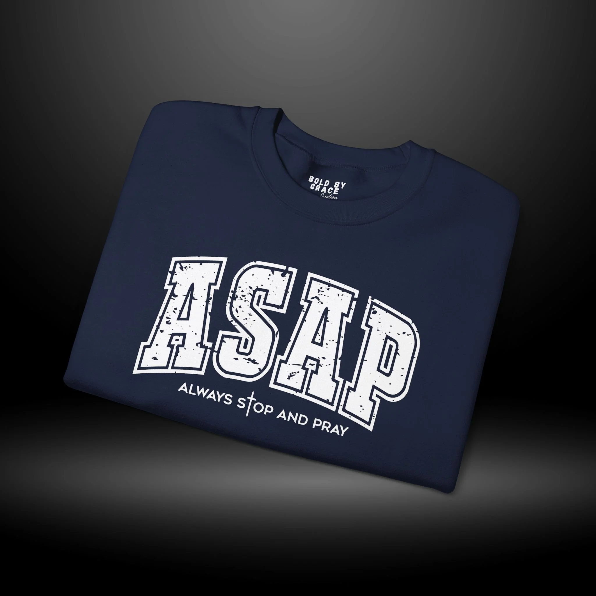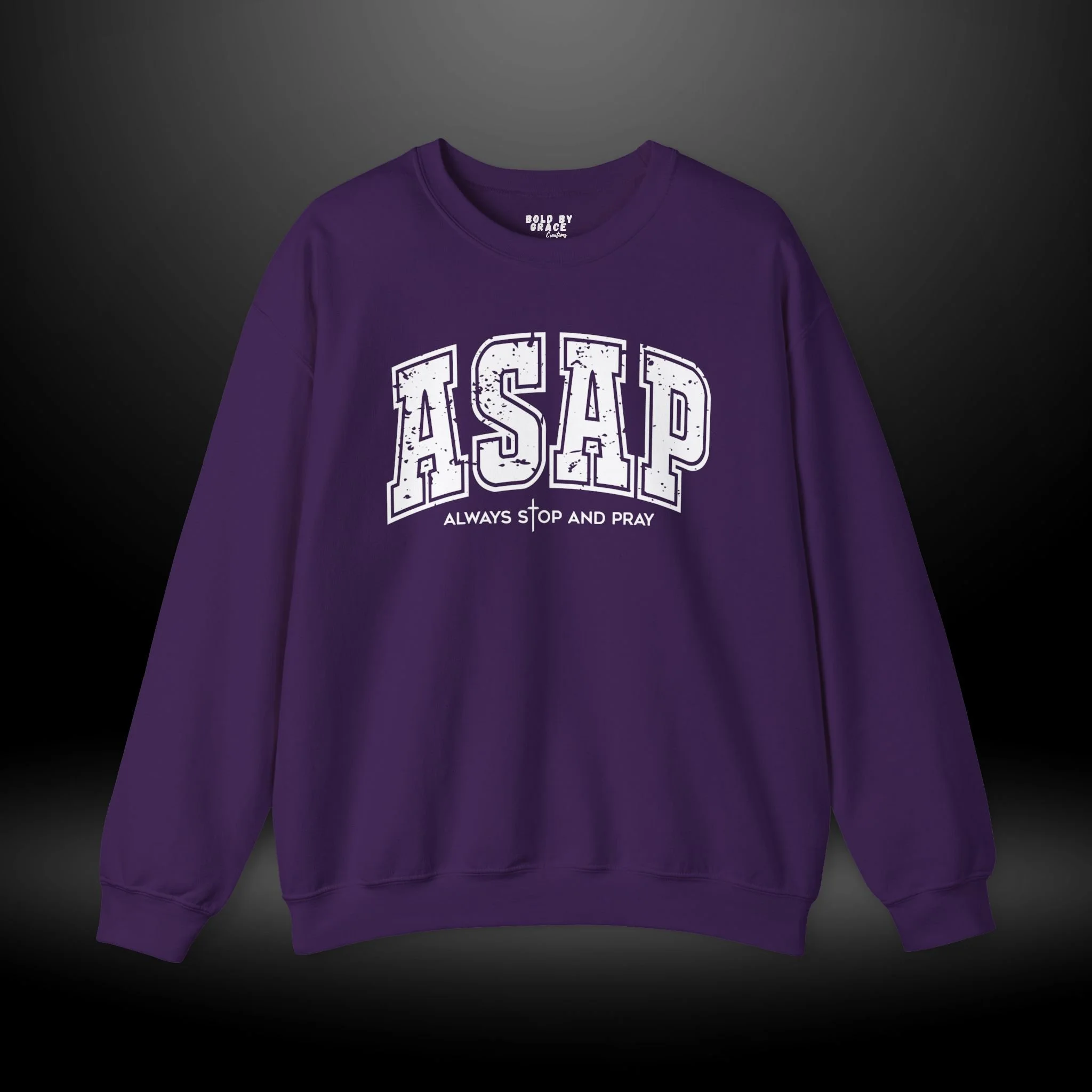 'ASAP: Always Stop And Pray' Crewneck Sweatshirt — Minimal Athletic Graphic Pullover