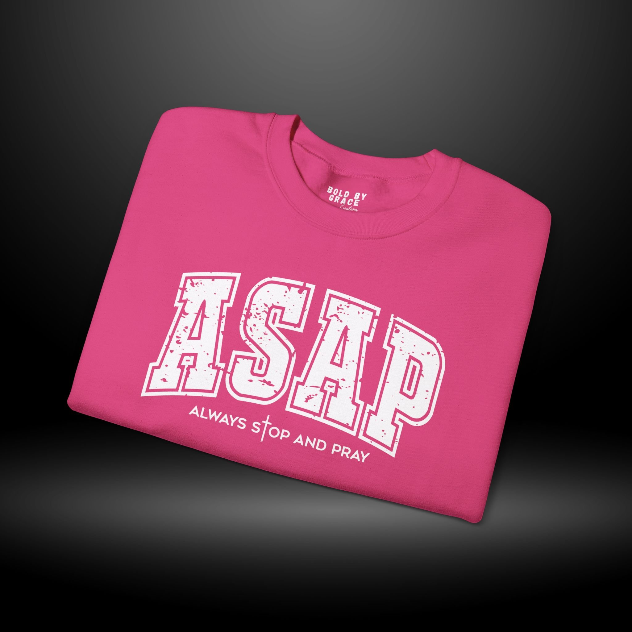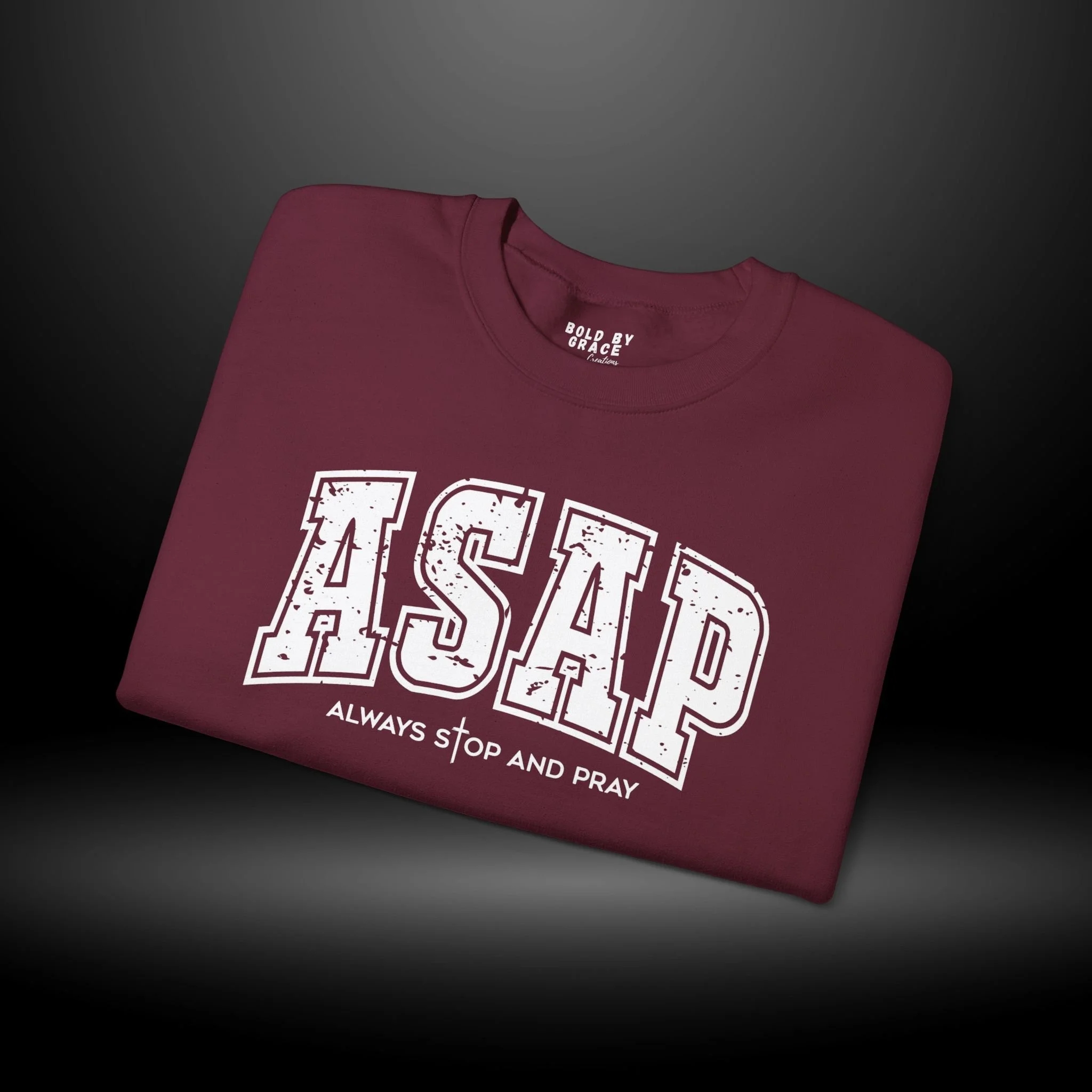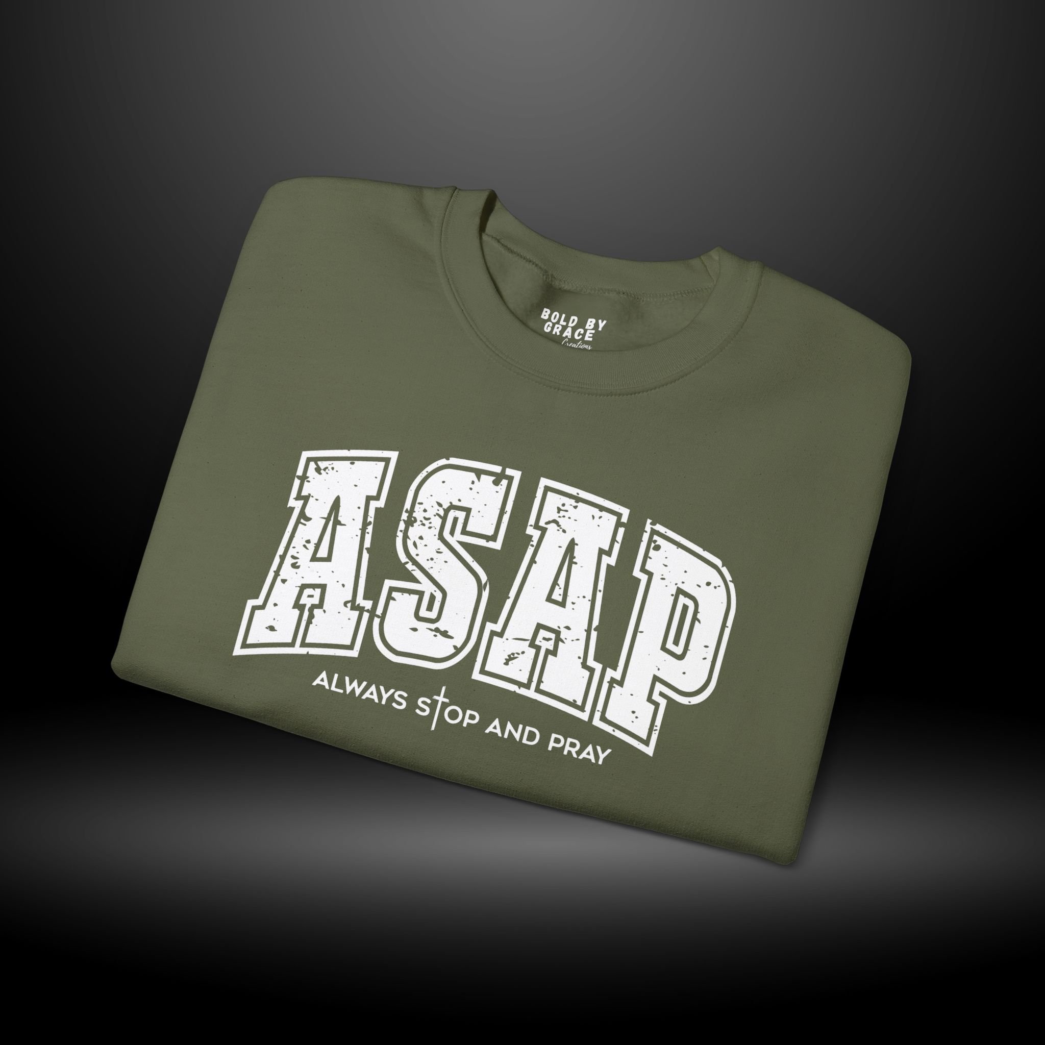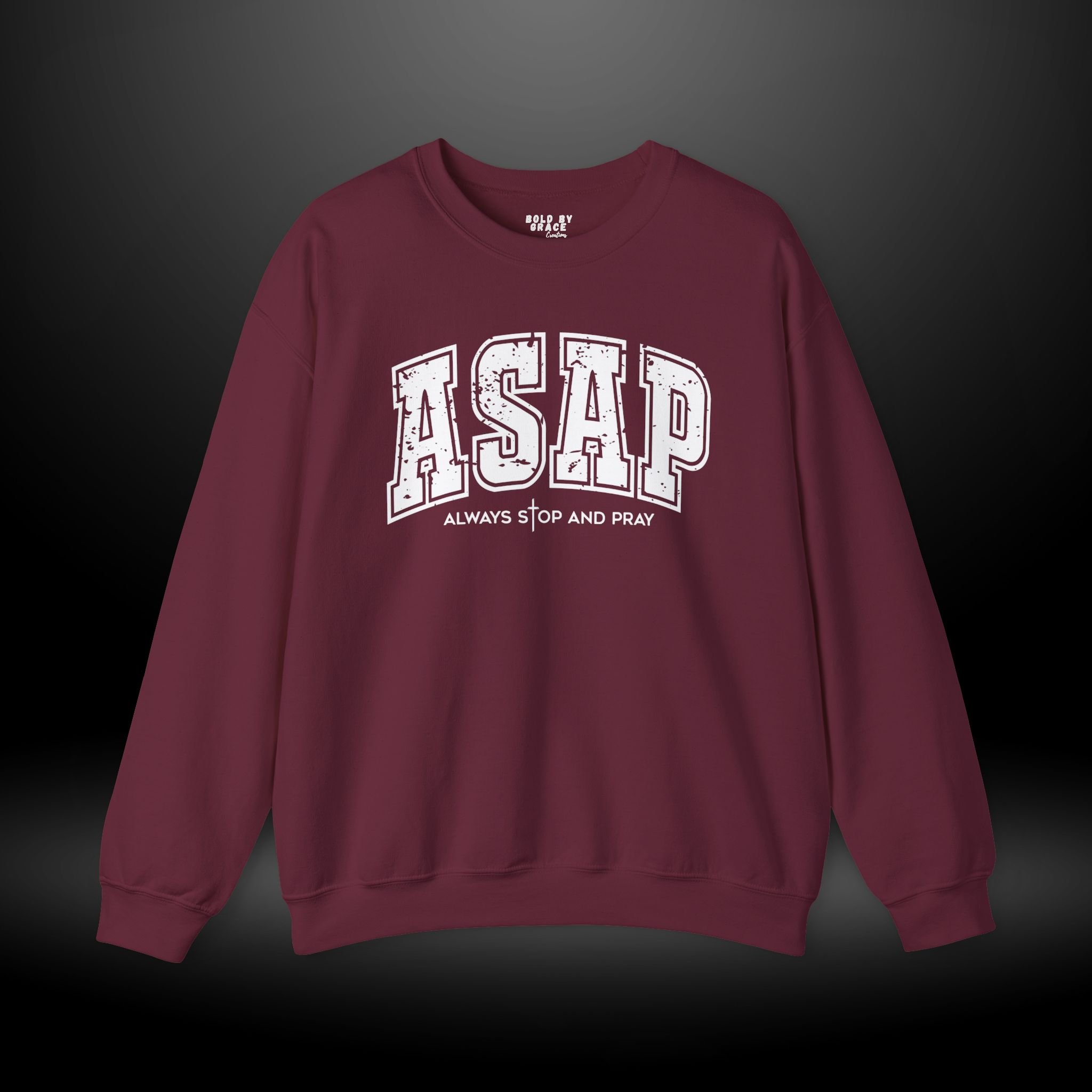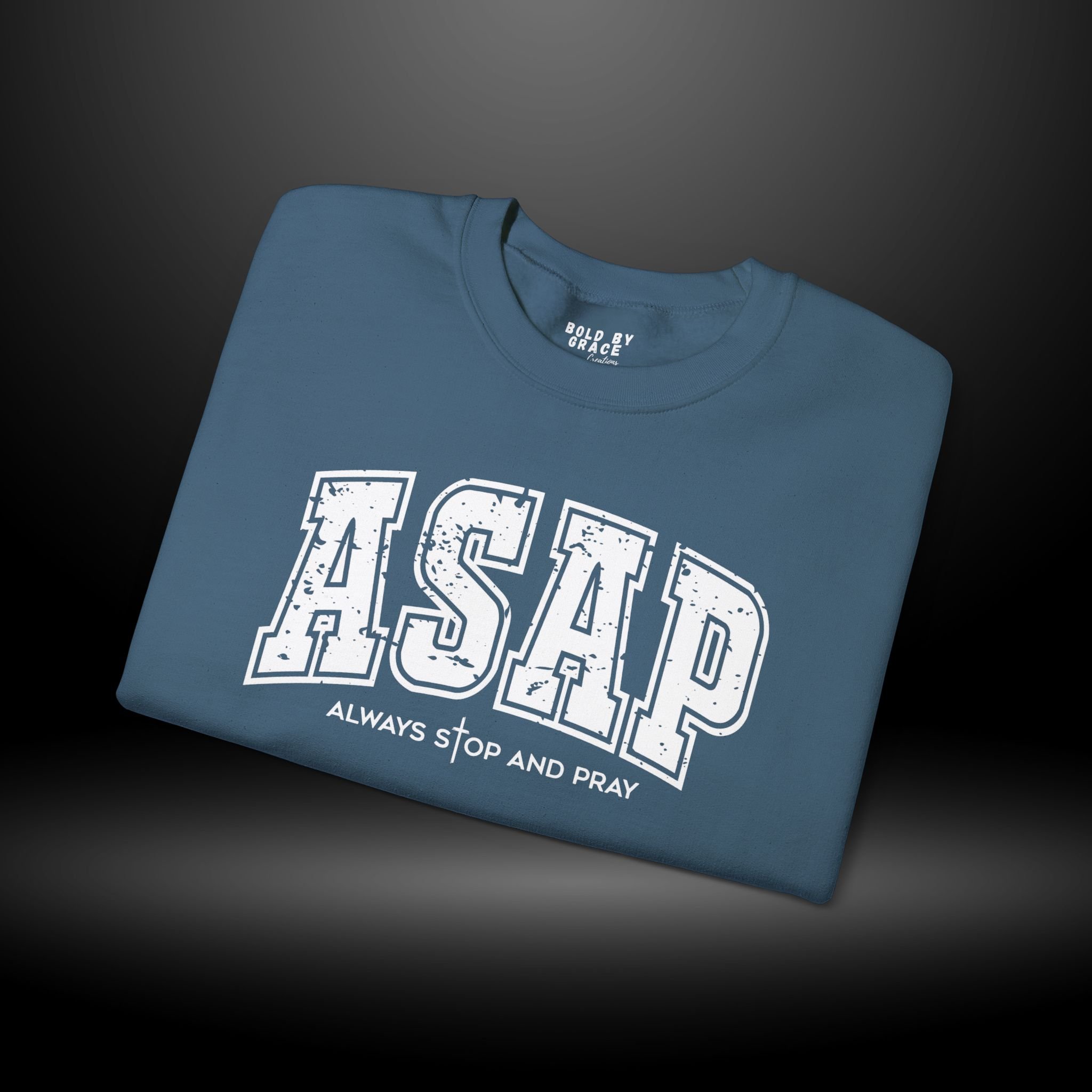 'ASAP: Always Stop And Pray' Crewneck Sweatshirt — Minimal Athletic Graphic Pullover