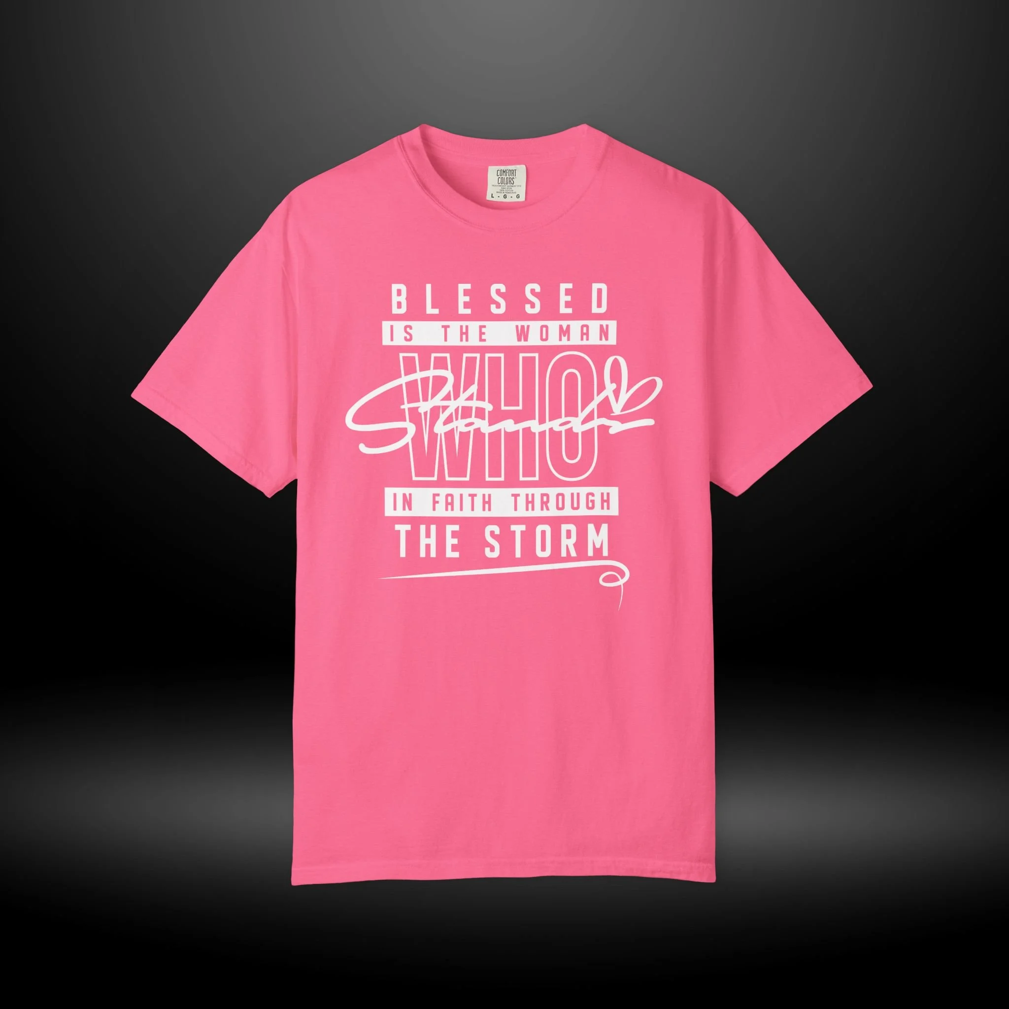 This garment-dyed tee carries a quiet, steady confidence. The relaxed heavyweight cotton feels substantial and lived-in, softening with every wear while the bold white lettering reads like a gentle proclamation of resilience. Wear it on slow mornings, community gatherings, or when you want a simple reminder of steady faith through rough days. The roomy cut layers easily over a long-sleeve or stands alone with jeans for a look that’s both comfortable and considered. Every detail — from the sewn-in label to the double-needle seams — speaks to durability, so this shirt keeps its presence in your rotation for seasons to come.