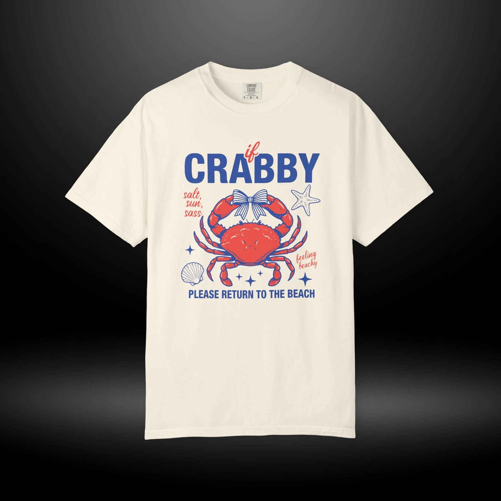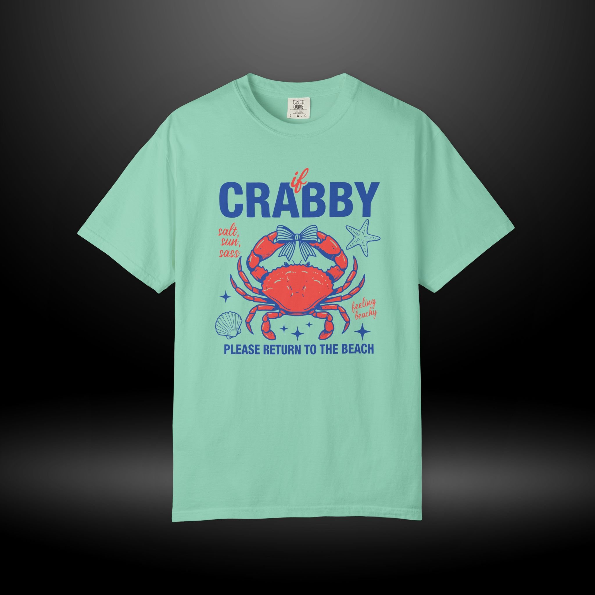 Soft, slouchy, and full of seaside sass — this Comfort Colors garment-dyed tee feels lived-in from the first wear. A cheerful crab illustration in sun-faded reds and coastal blues sits front-and-center with tongue-in-cheek wording that reads like a postcard from the shore. The heavyweight cotton and relaxed cut make it a go-to for slow mornings on the porch, foggy walks along the boardwalk, or lazy afternoons packing a cooler for a beach day. It layers easily over a swimsuit or pairs with worn denim for a casual, slightly salty look that says you belong where the tide meets the sand.