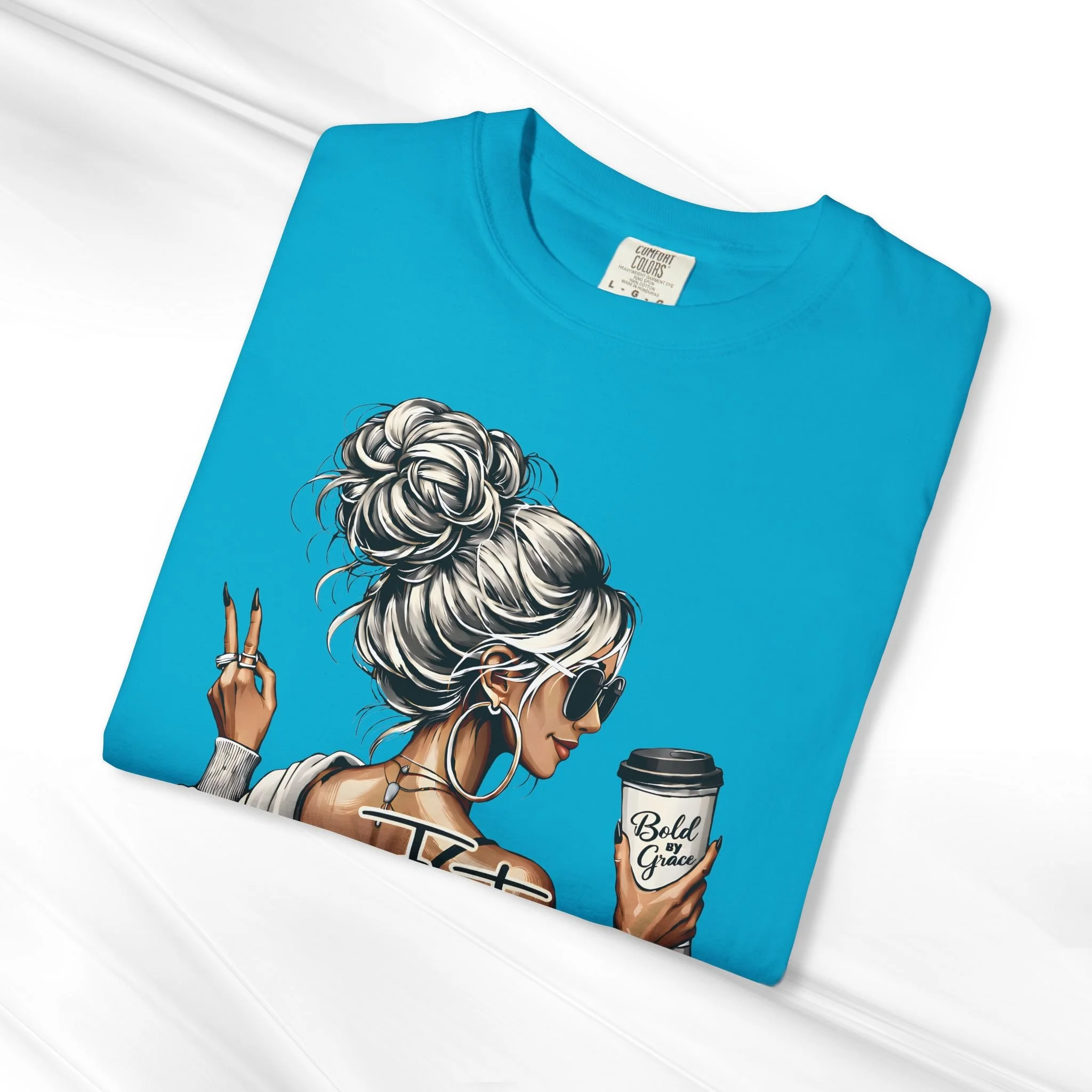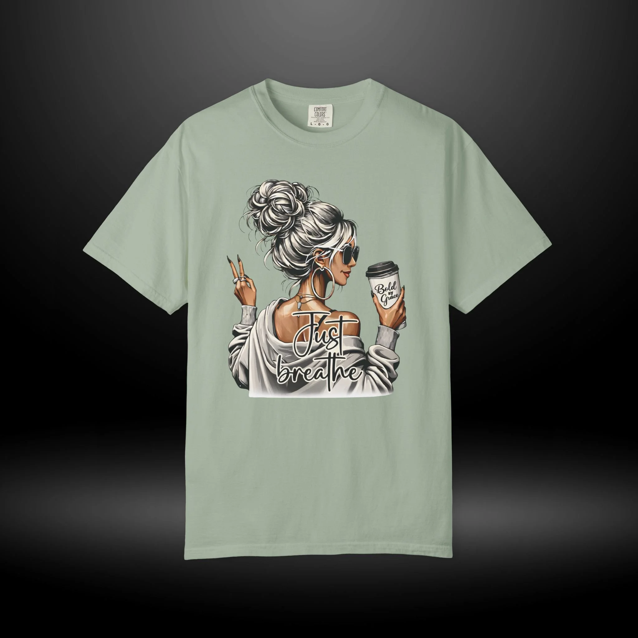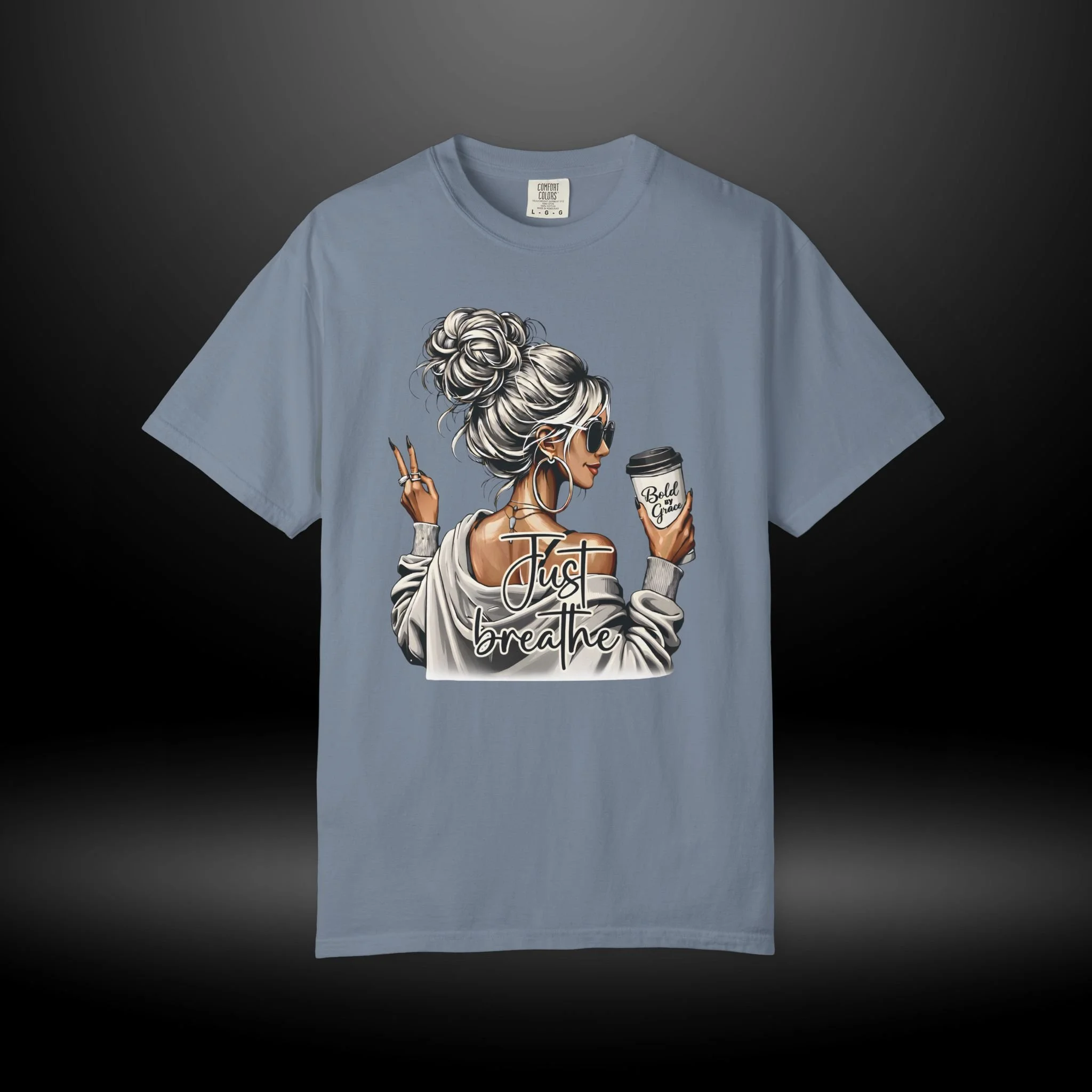 Messy Bun Coffee Girl Comfort Colors T-Shirt | Just Breathe Bold by Grace