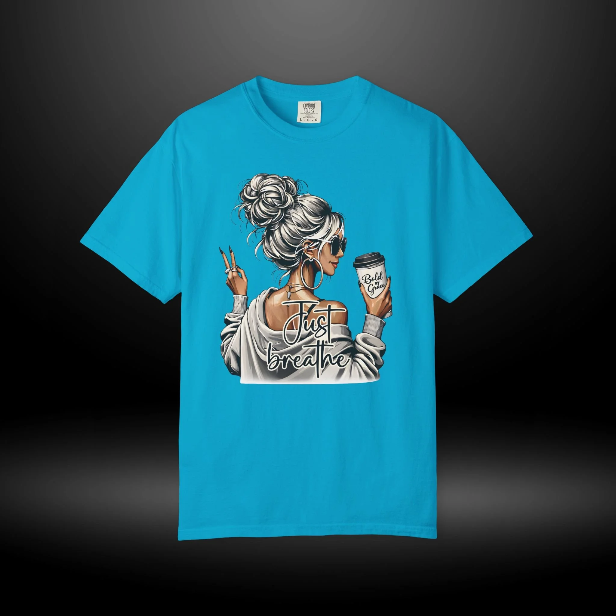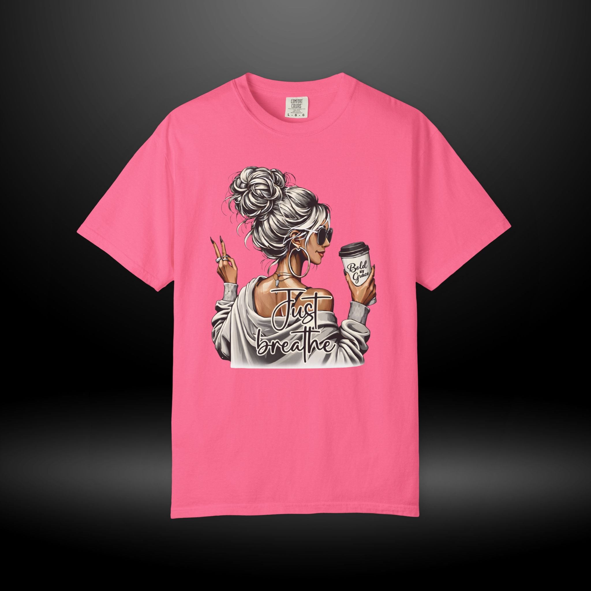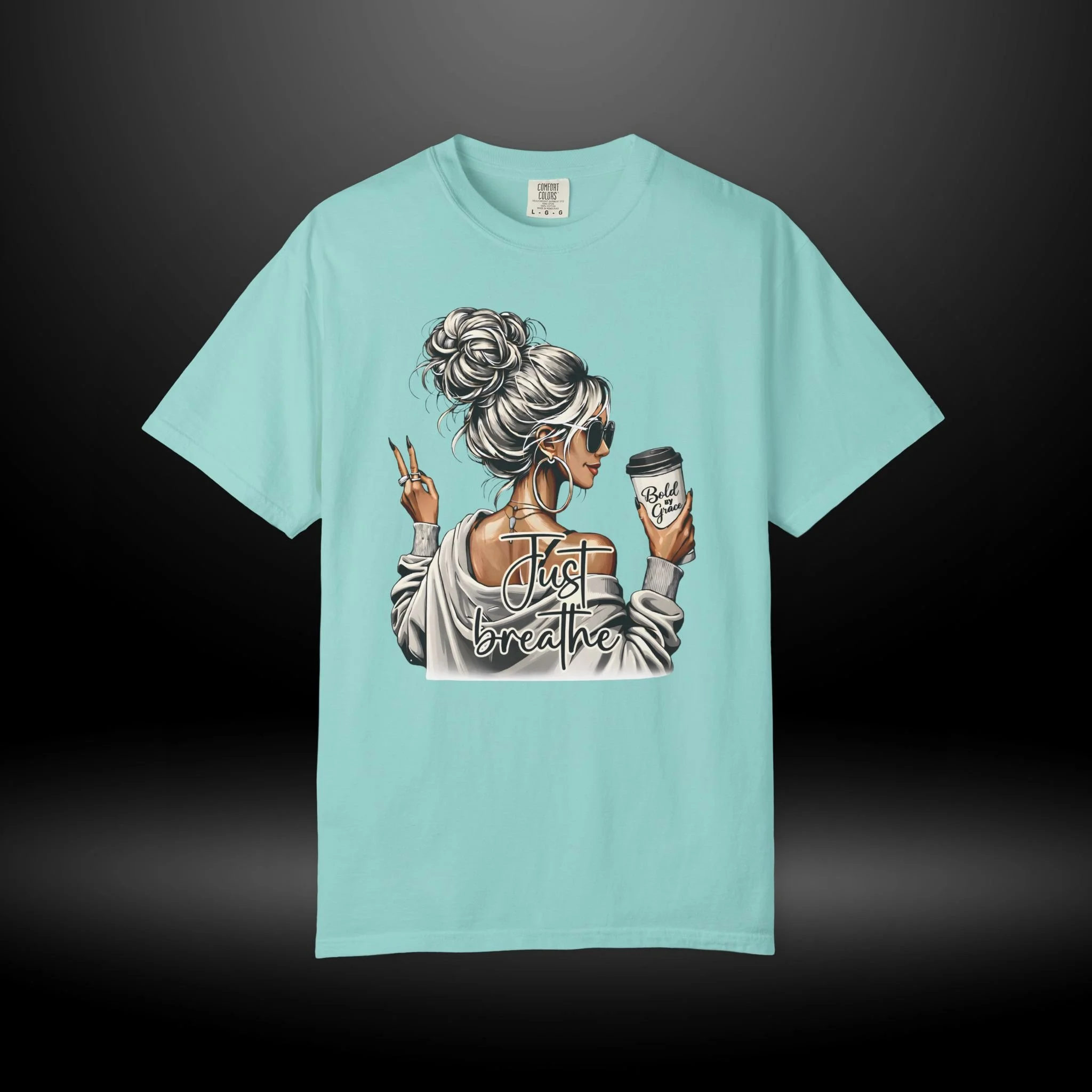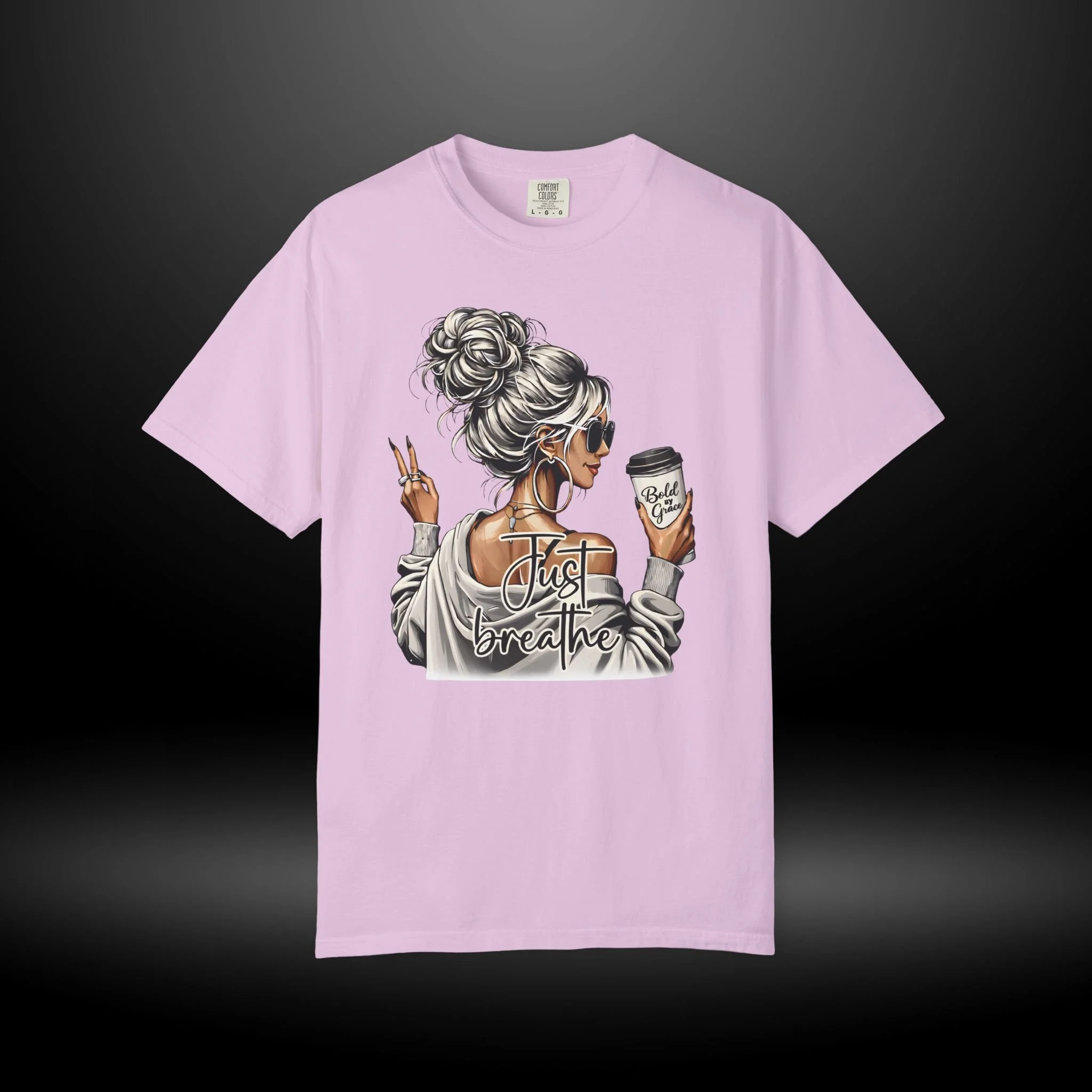 Messy Bun Coffee Girl Comfort Colors T-Shirt | Just Breathe Bold by Grace