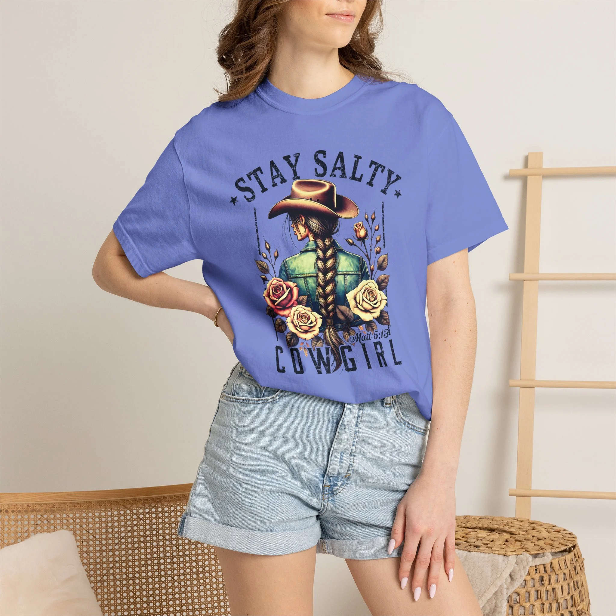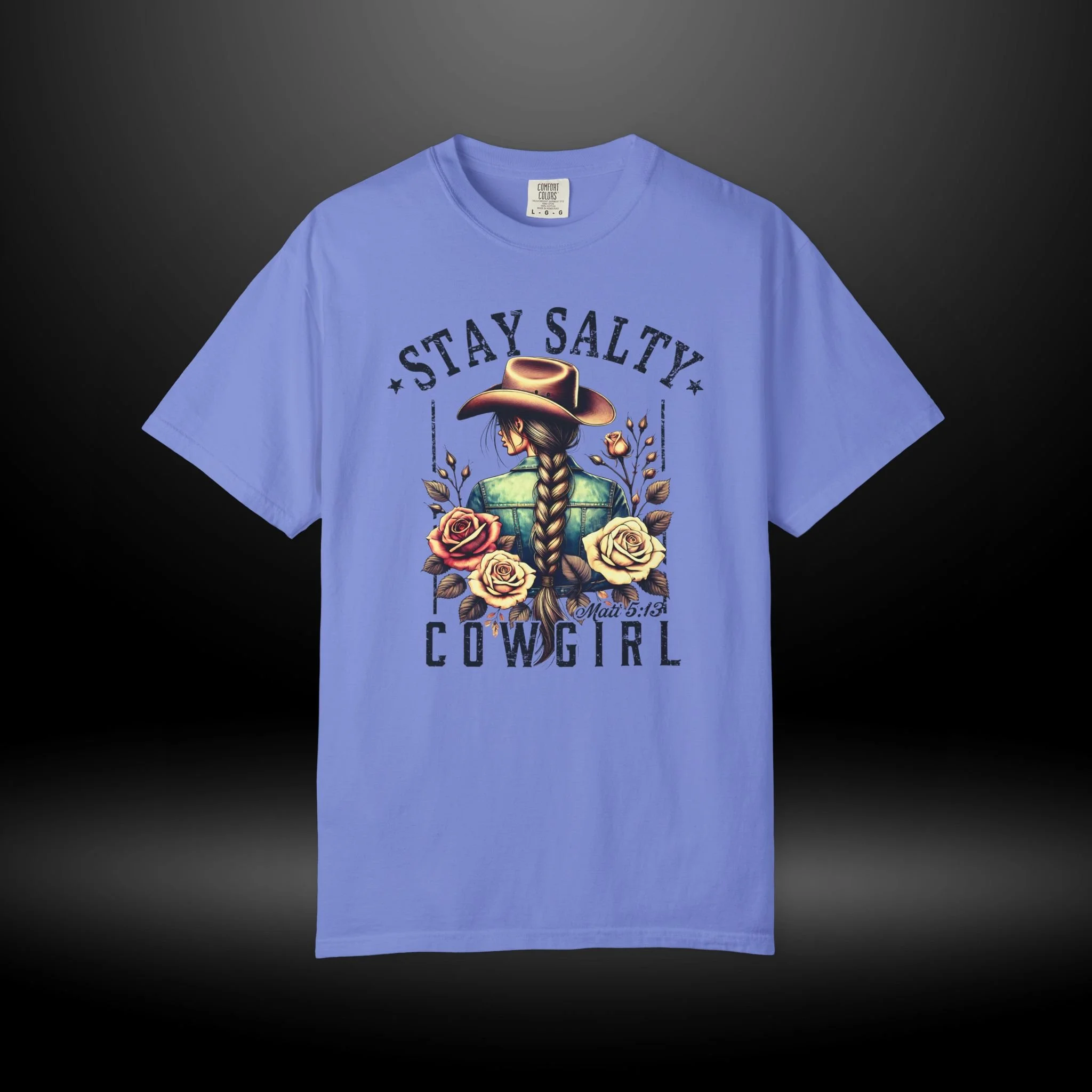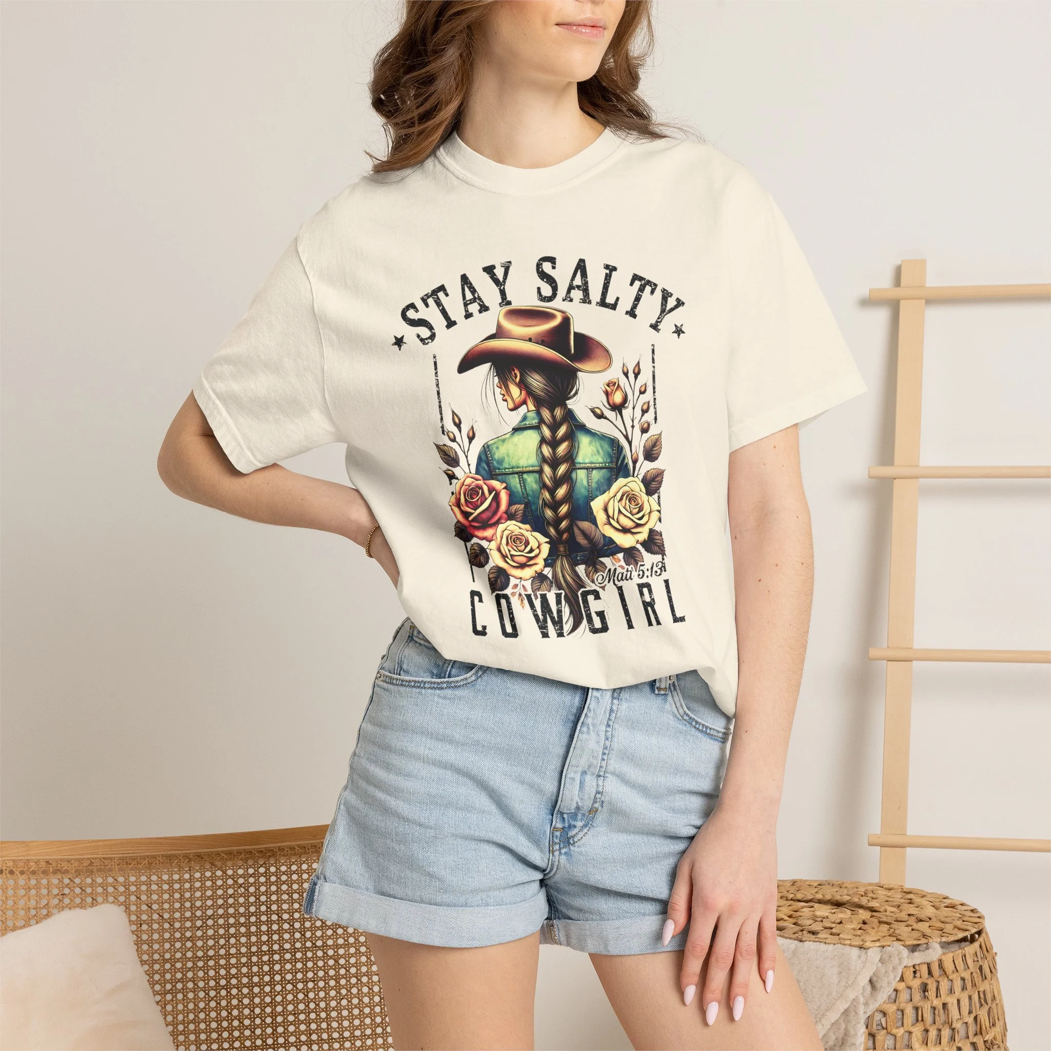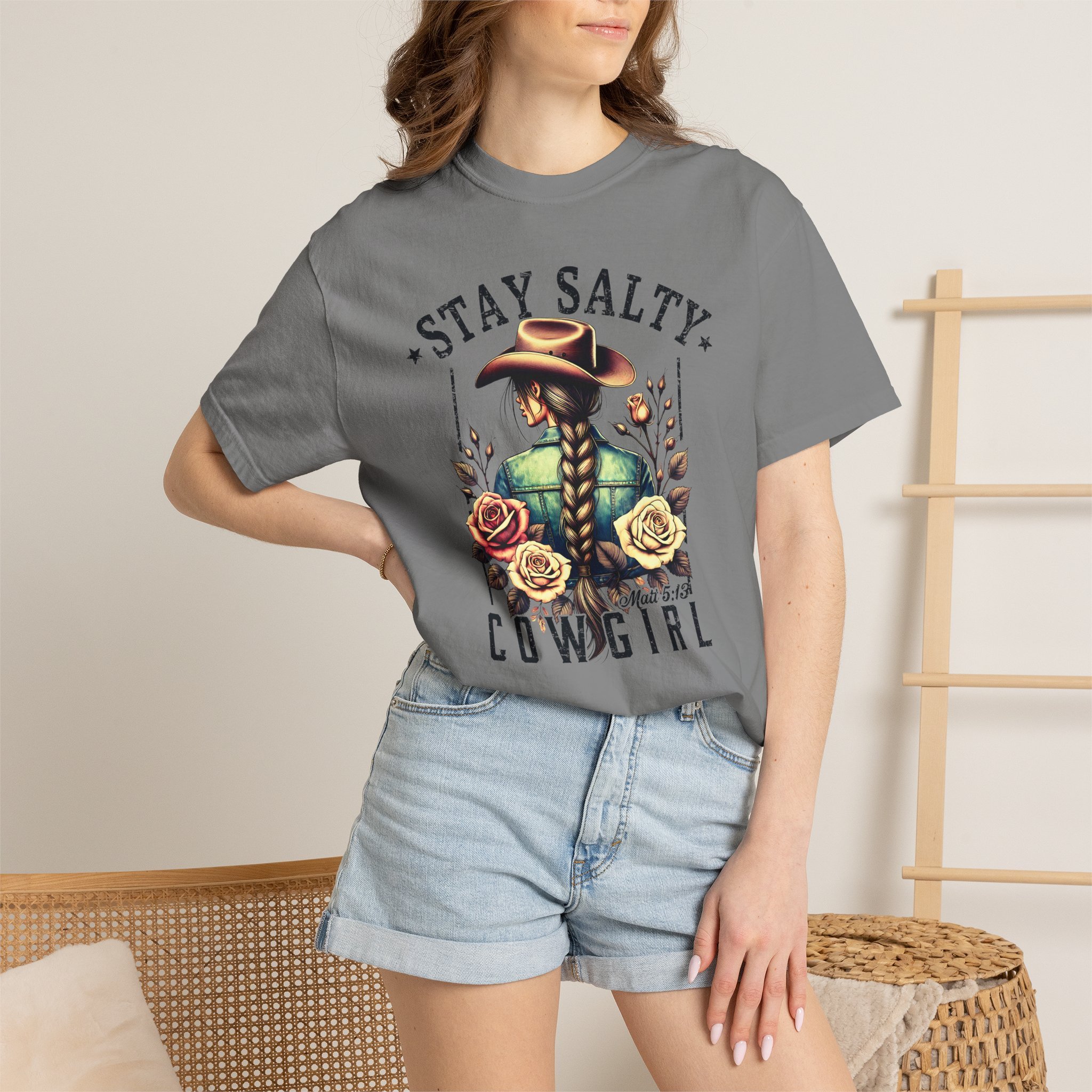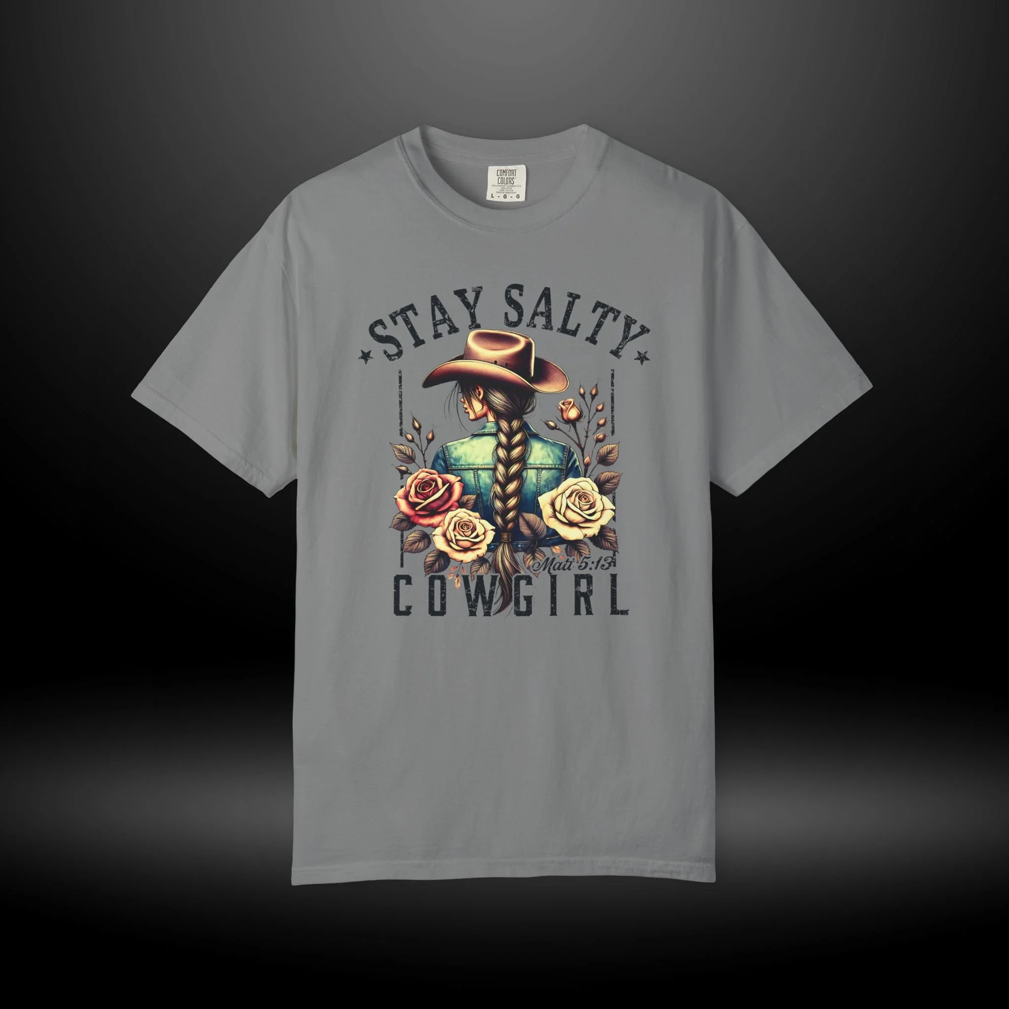 Stay Salty Cowgirl Comfort Colors T-Shirt | Cowgirl Graphic Tee, Western Floral Artwork