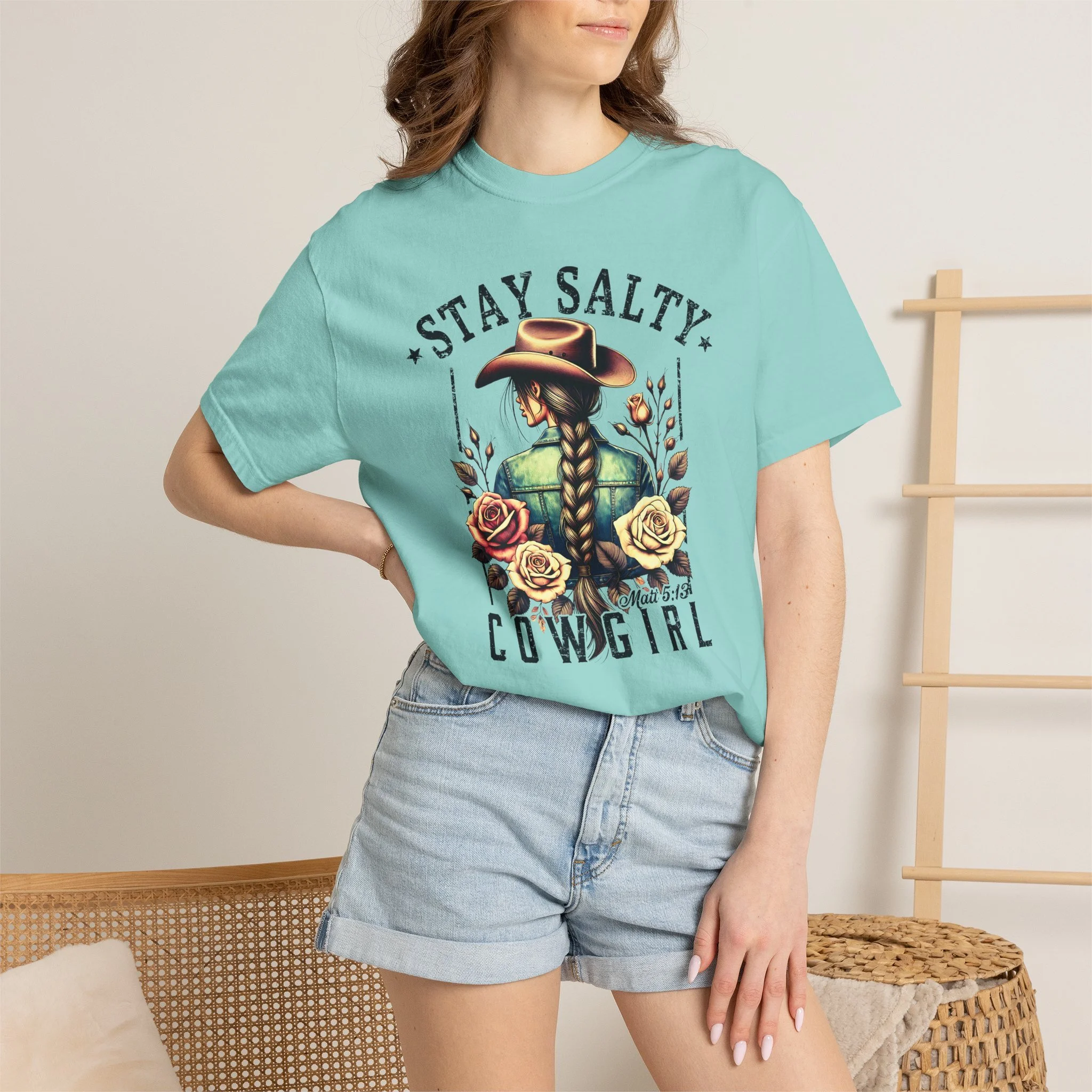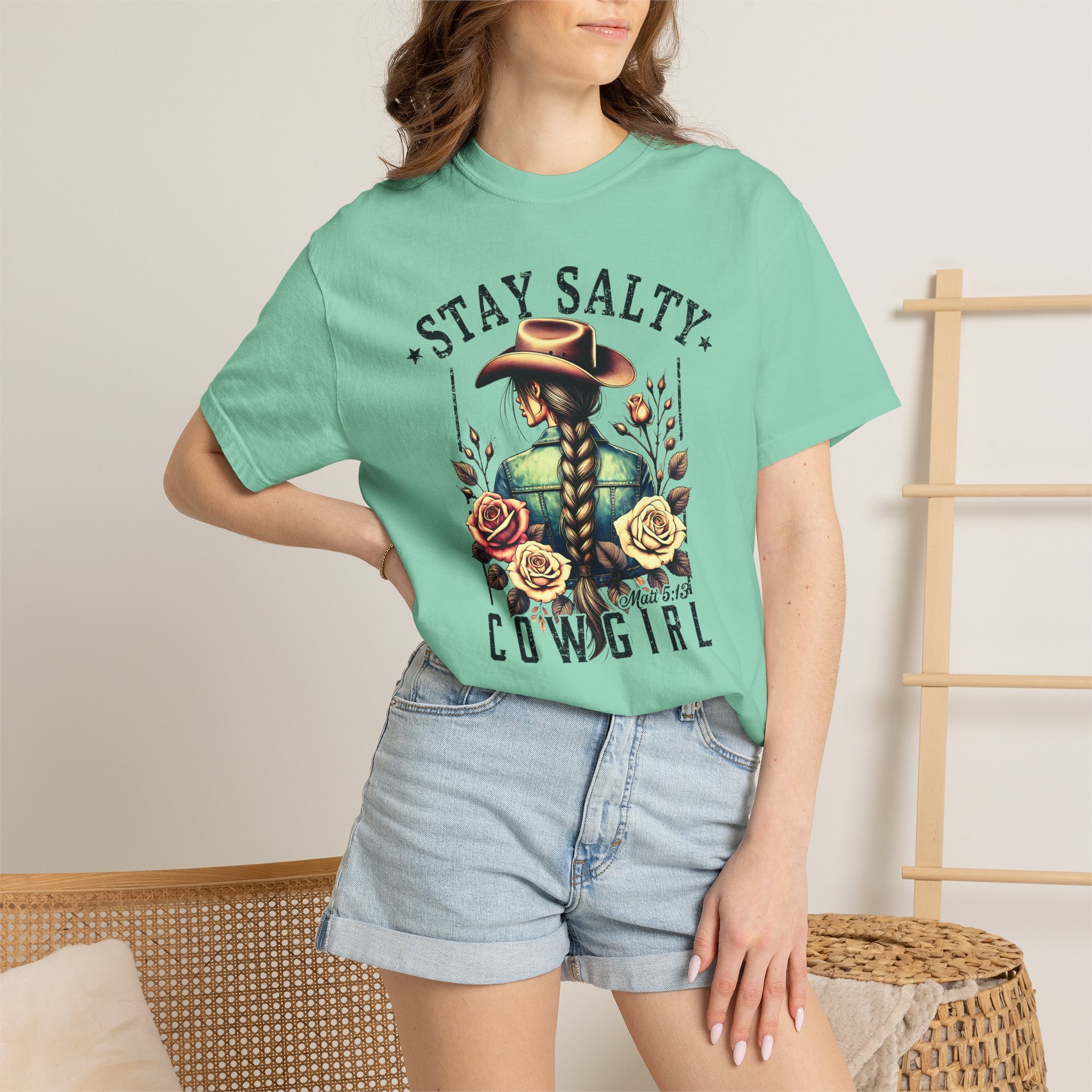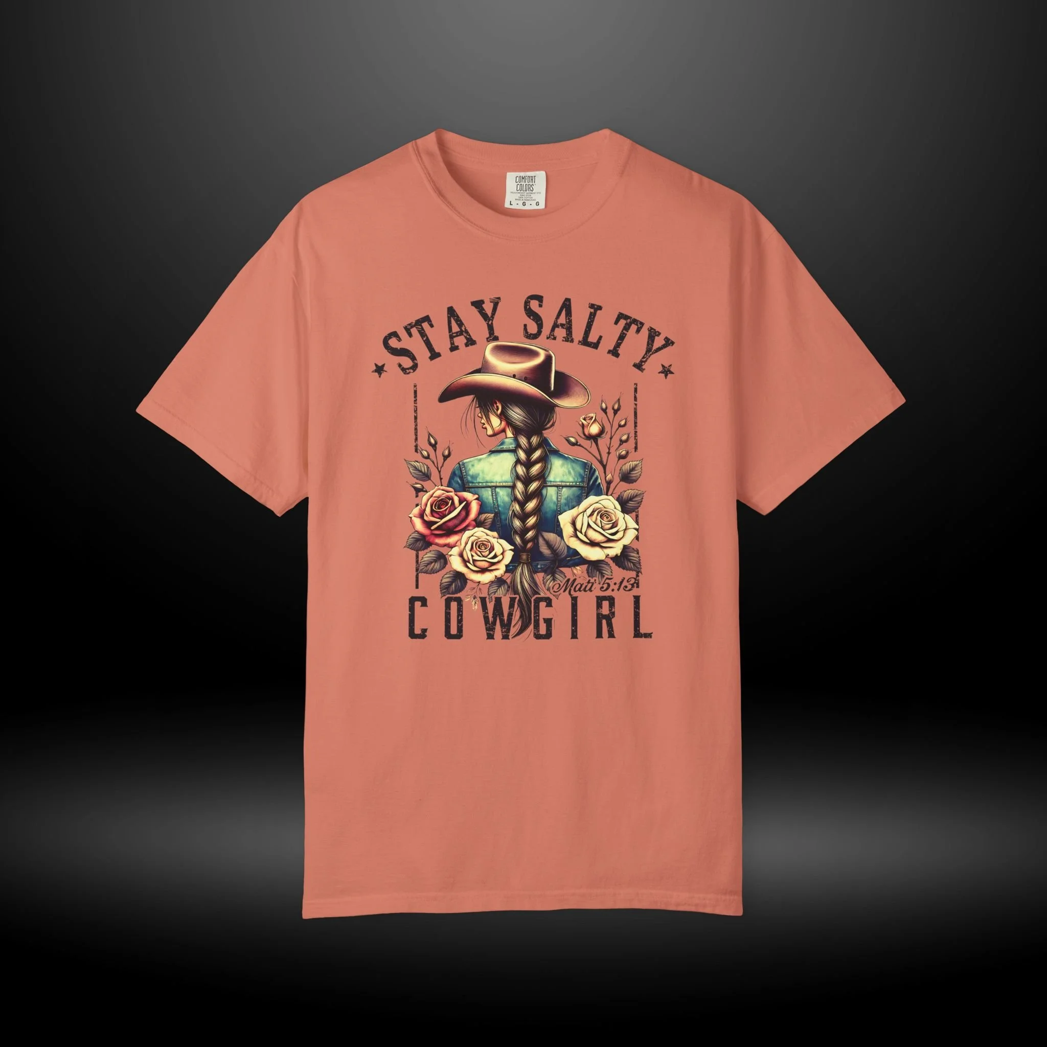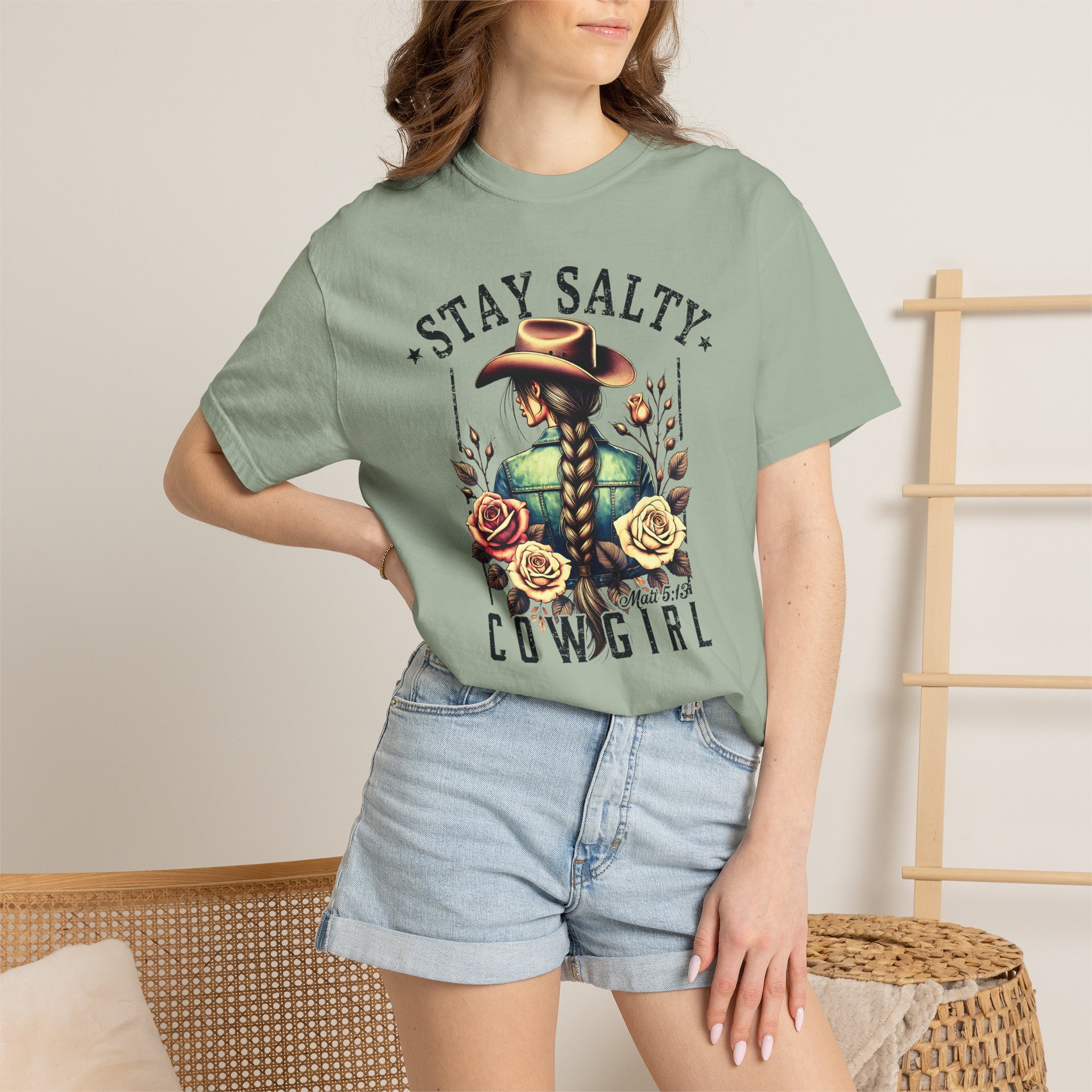Stay Salty Cowgirl Comfort Colors T-Shirt | Cowgirl Graphic Tee, Western Floral Artwork