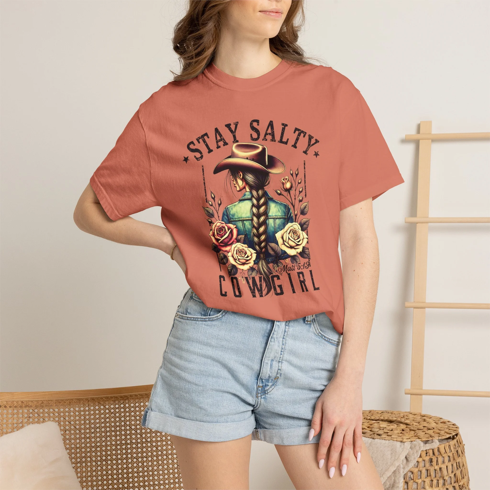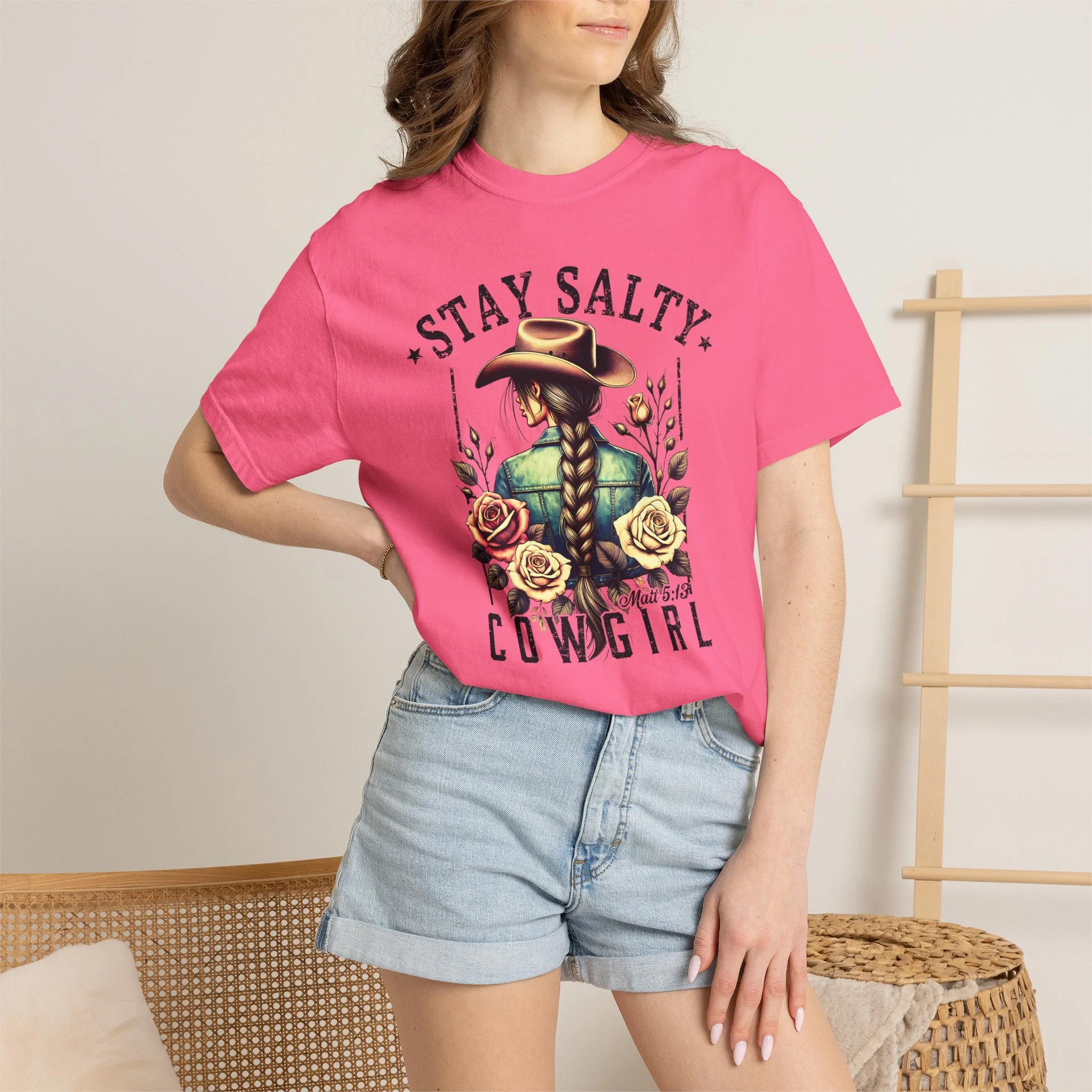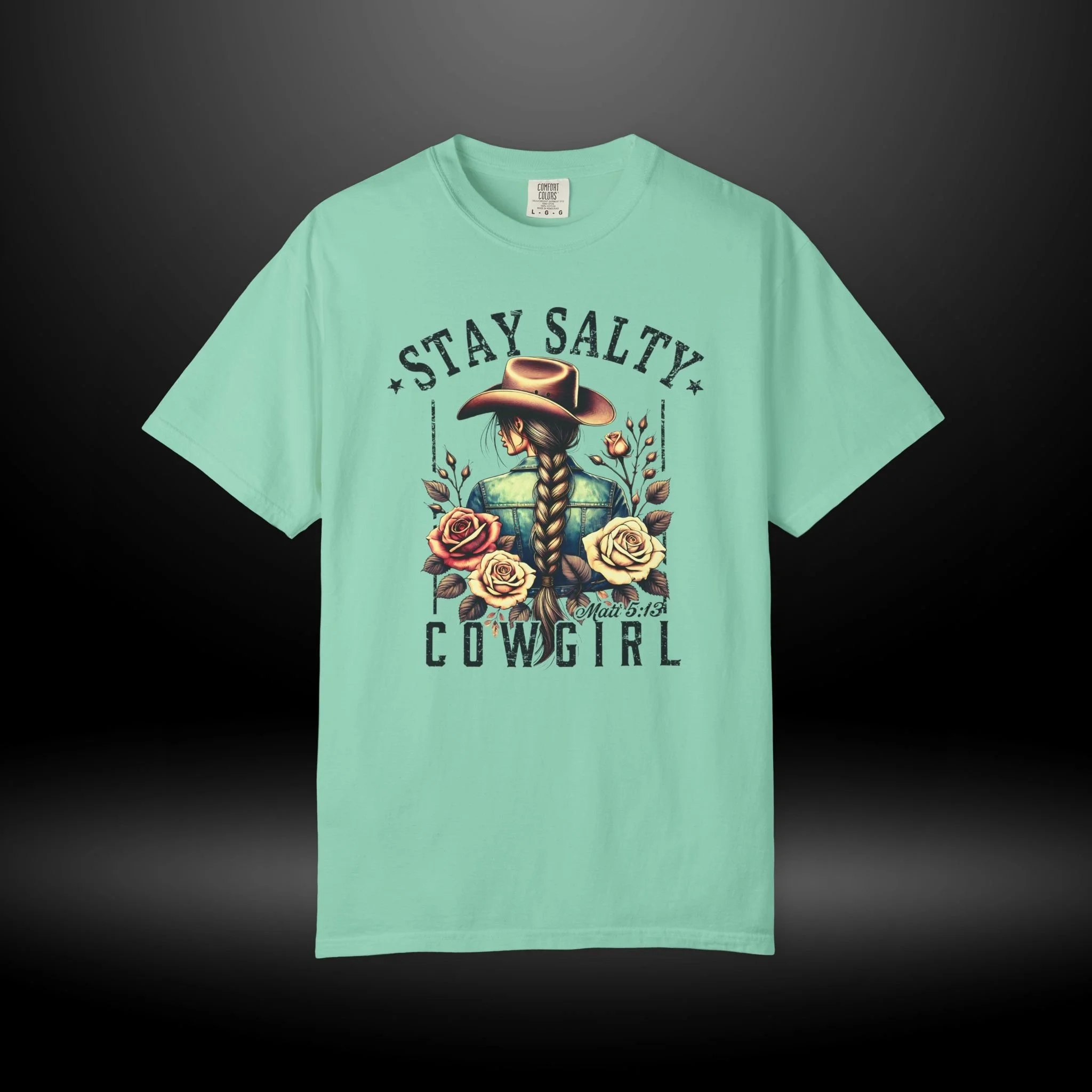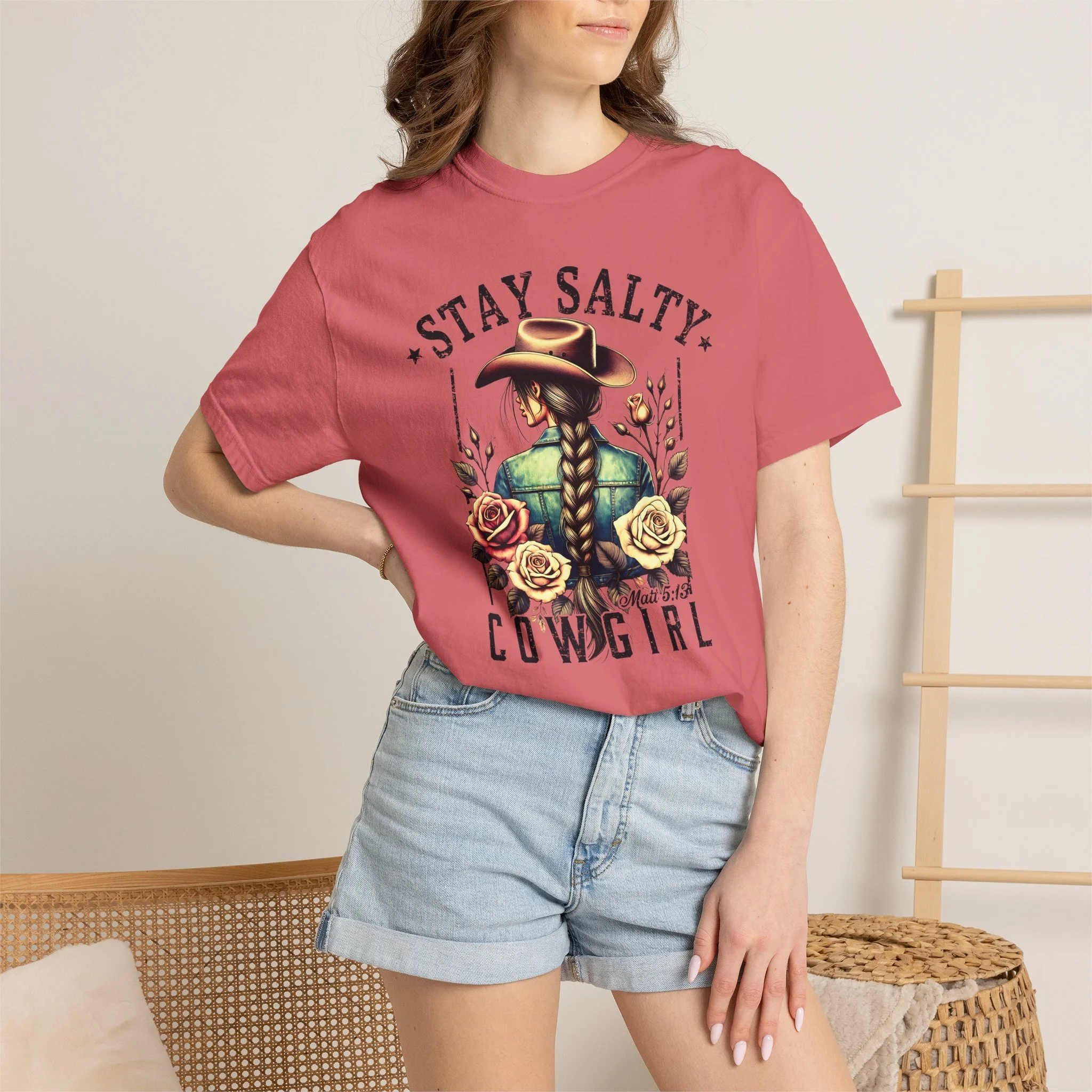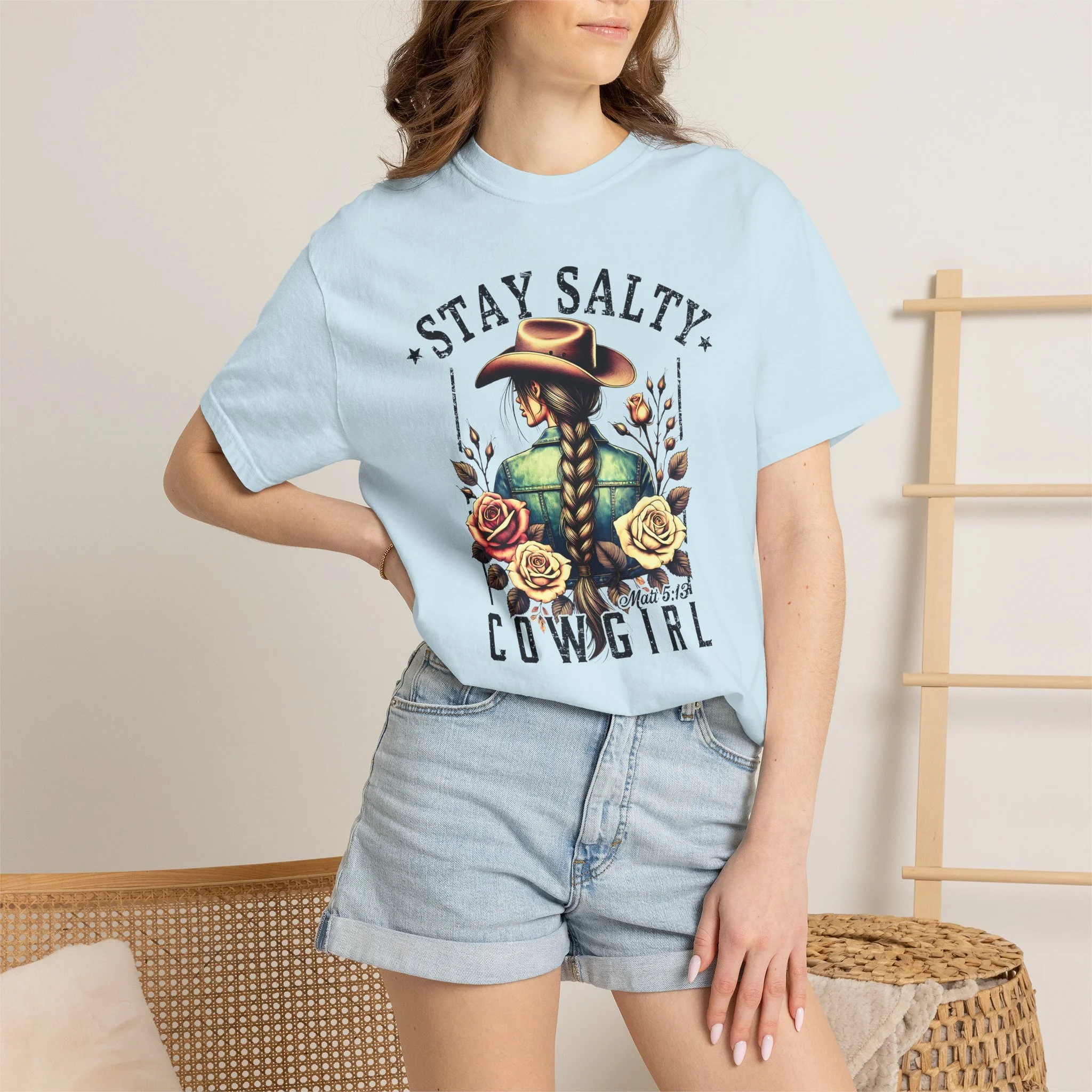 Stay Salty Cowgirl Comfort Colors T-Shirt | Cowgirl Graphic Tee, Western Floral Artwork